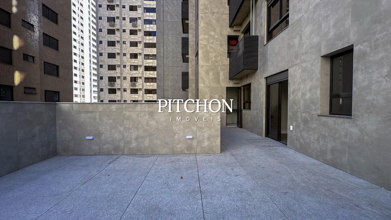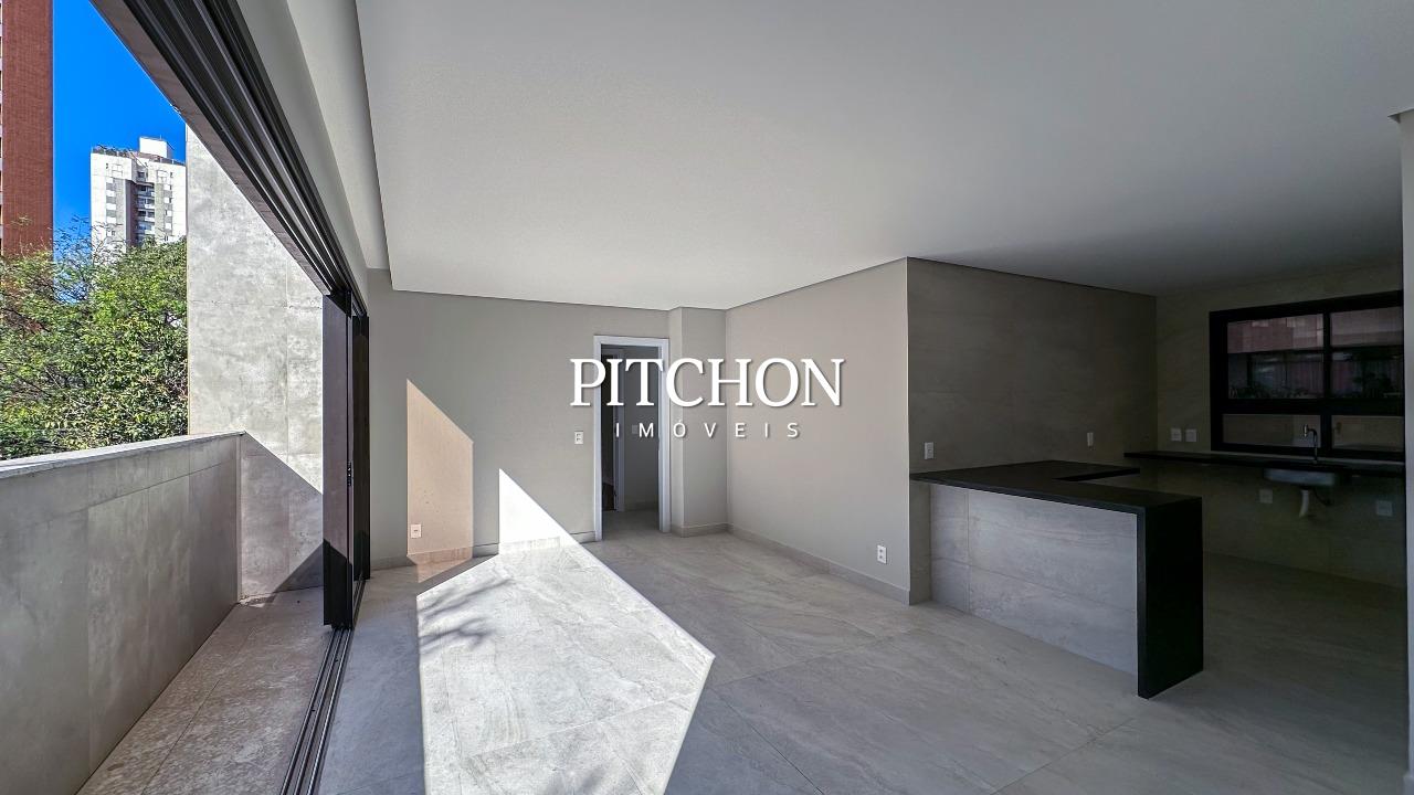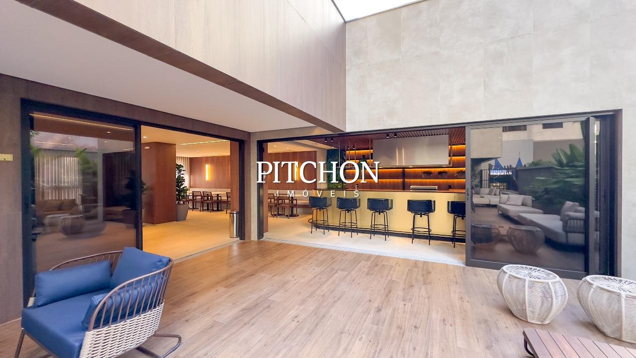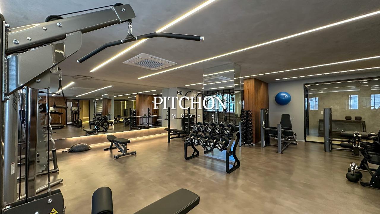 A área privativa possui 143,86 m², sendo 42,30 m² de área externa e 101,5 m² de área interna. O apartamento conta com três quartos, sendo uma suíte, lavabo, ampla sala para dois ambientes, cozinha integrada e banho de serviço. Os acabamentos são de alto padrão, com porcelanato nas áreas sociais e molhadas, e duas vagas de garagem livres.