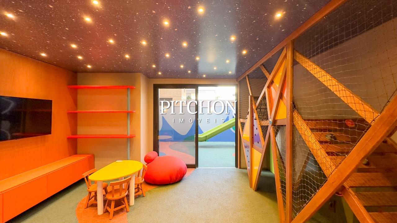 Prédio exclusivo, revestido em granito aerado e porcelanato amadeirado, com três acessos de garagem independentes e lazer completo finamente mobiliado. O condomínio oferece um amplo salão de festas, área gourmet integrada a um espaço aberto perfeito para confraternizações, além de piscina coberta com raia, academia, sauna e espaços kids indoor e outdoor.