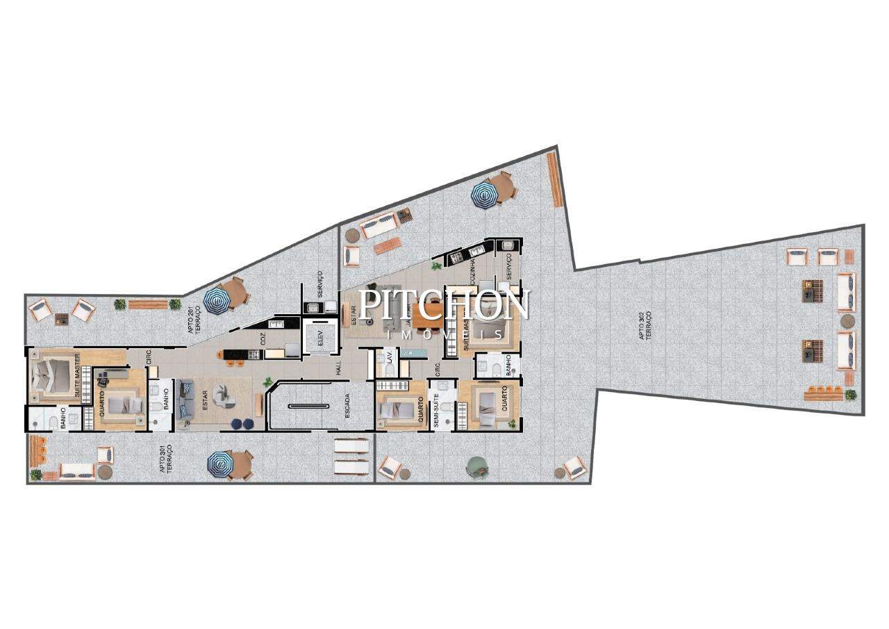 Os apartamentos contam com piso da sala, circulação e hall do elevador em porcelanato na cor Concreto, cozinha e área de serviço com piso e bancada em granito São Gabriel preto, quartos com piso laminado vinílico com medição de individualizada de água e gás.