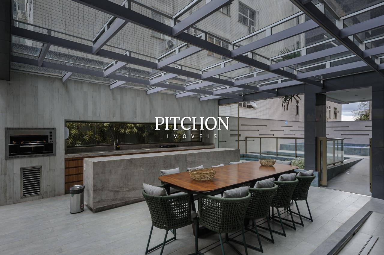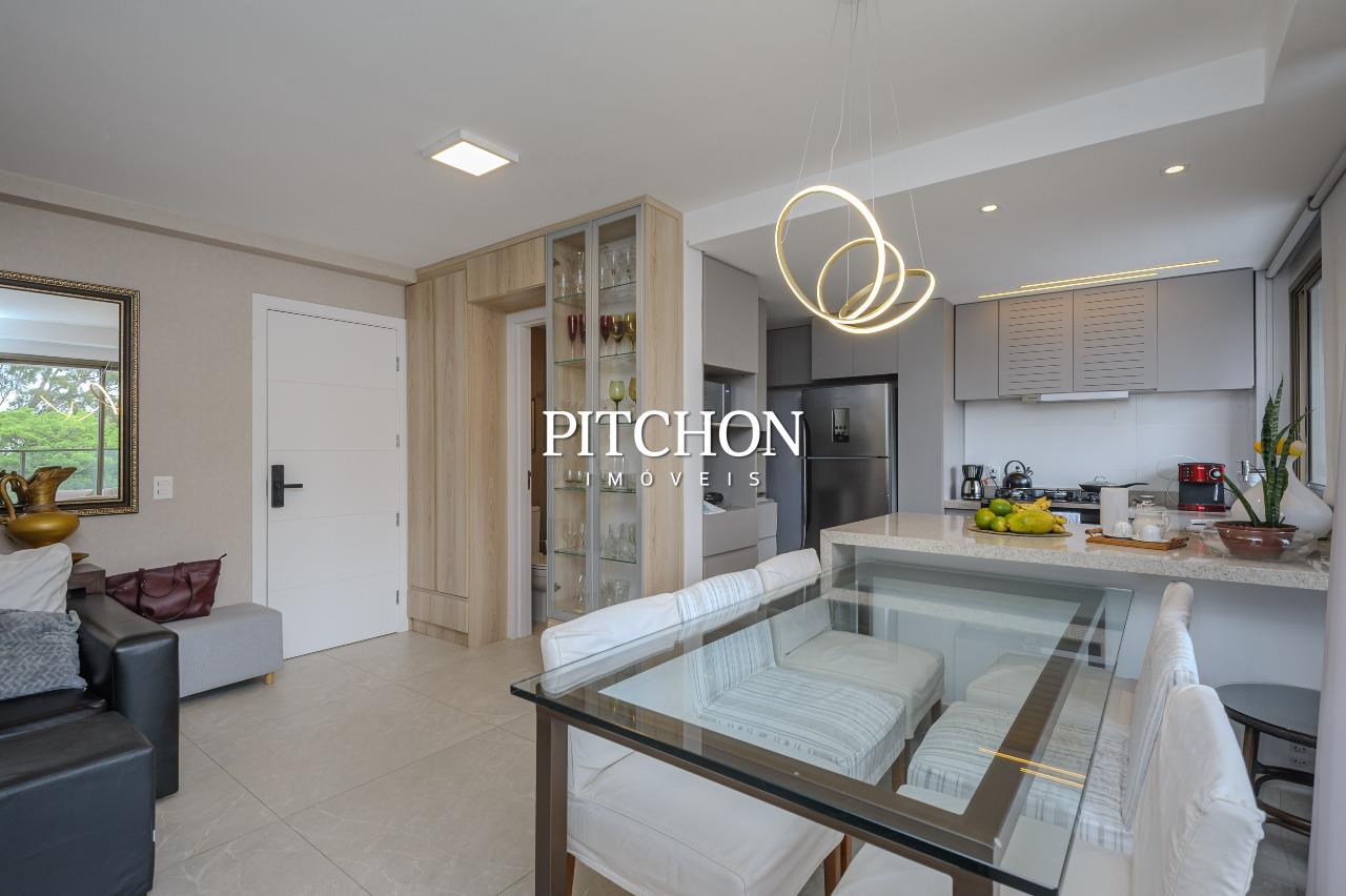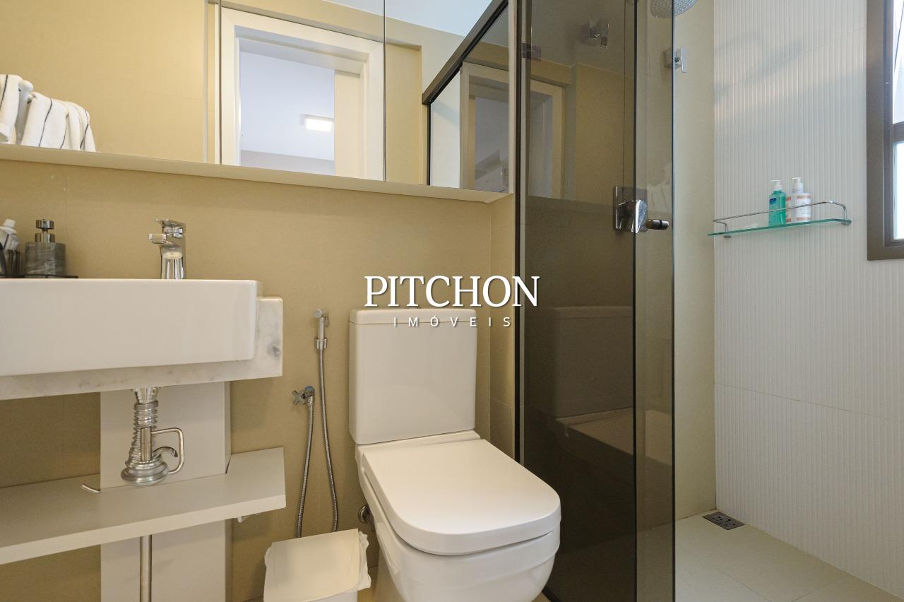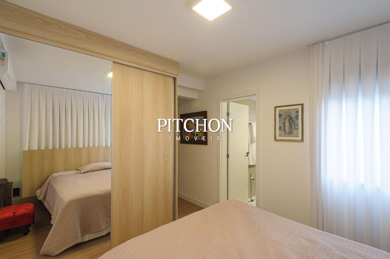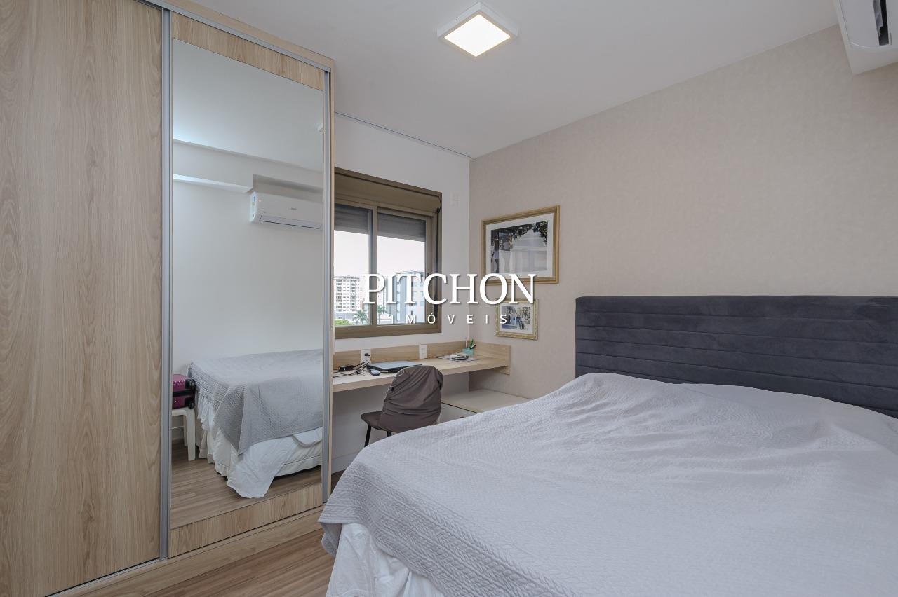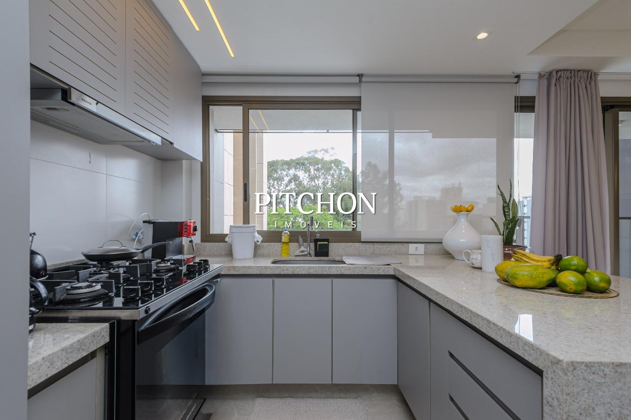 Sala ampla para dois ambientes com piso em porcelanato e quartos com piso em vinílico, varanda com vista livre e definitiva, área de serviço, lavabo, banheiro social, 3 quartos com armários, sendo duas suítes e um escritório, 2 vagas de garagem cobertas.