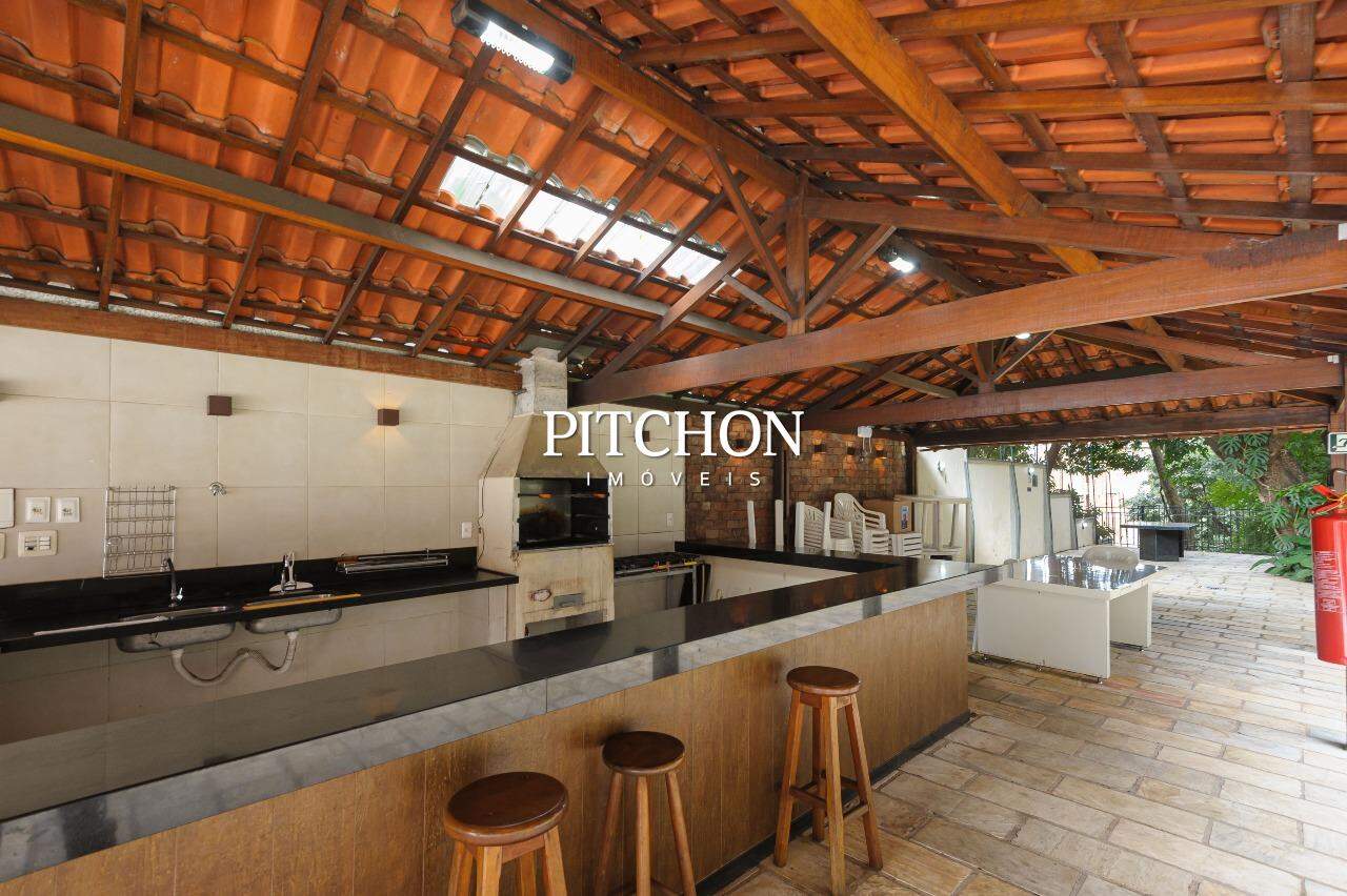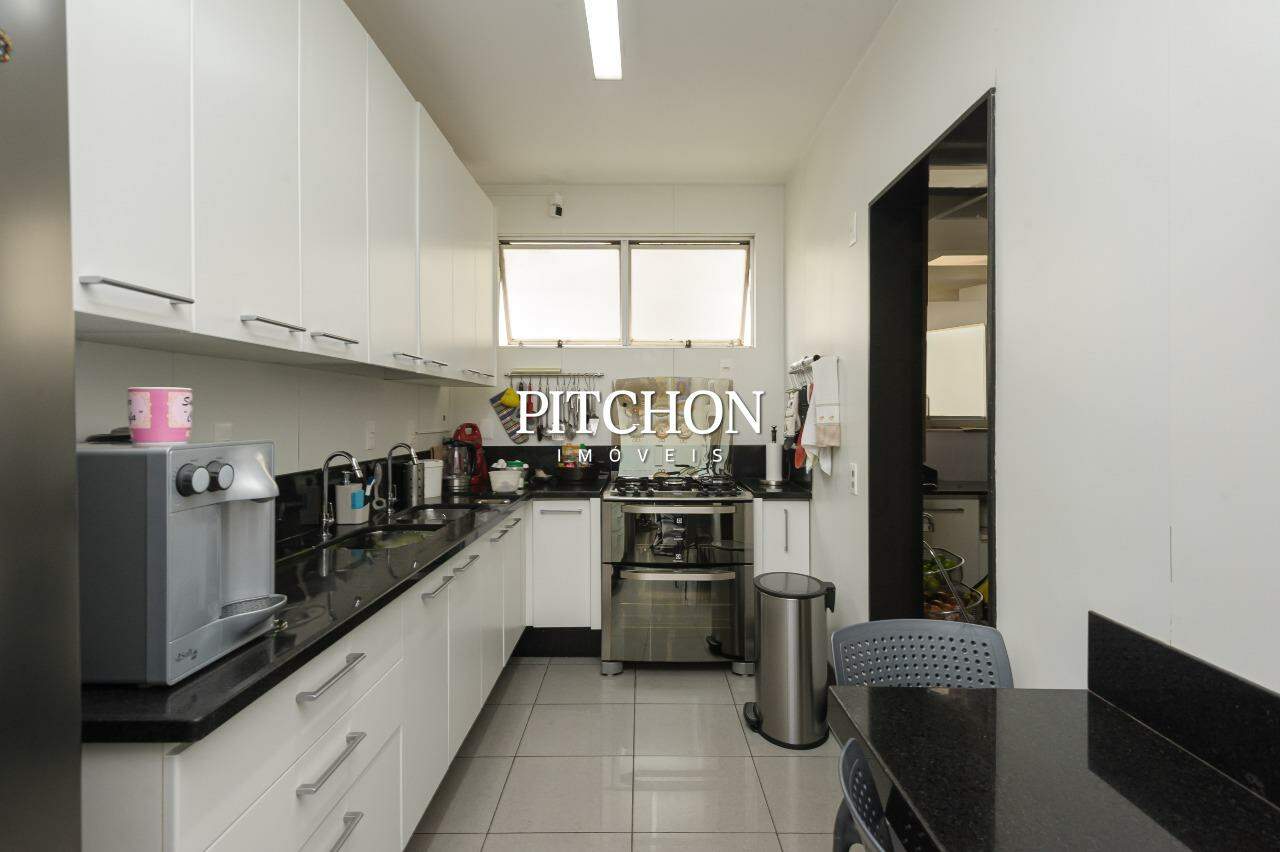 Ampla cozinha, área de serviço, quarto de funcionários e banheiro de serviço; garagem com 3 vagas e box.