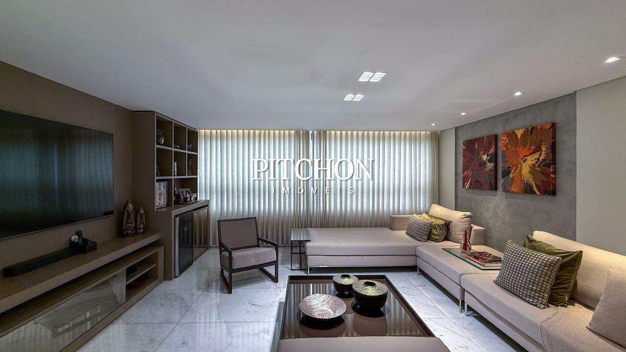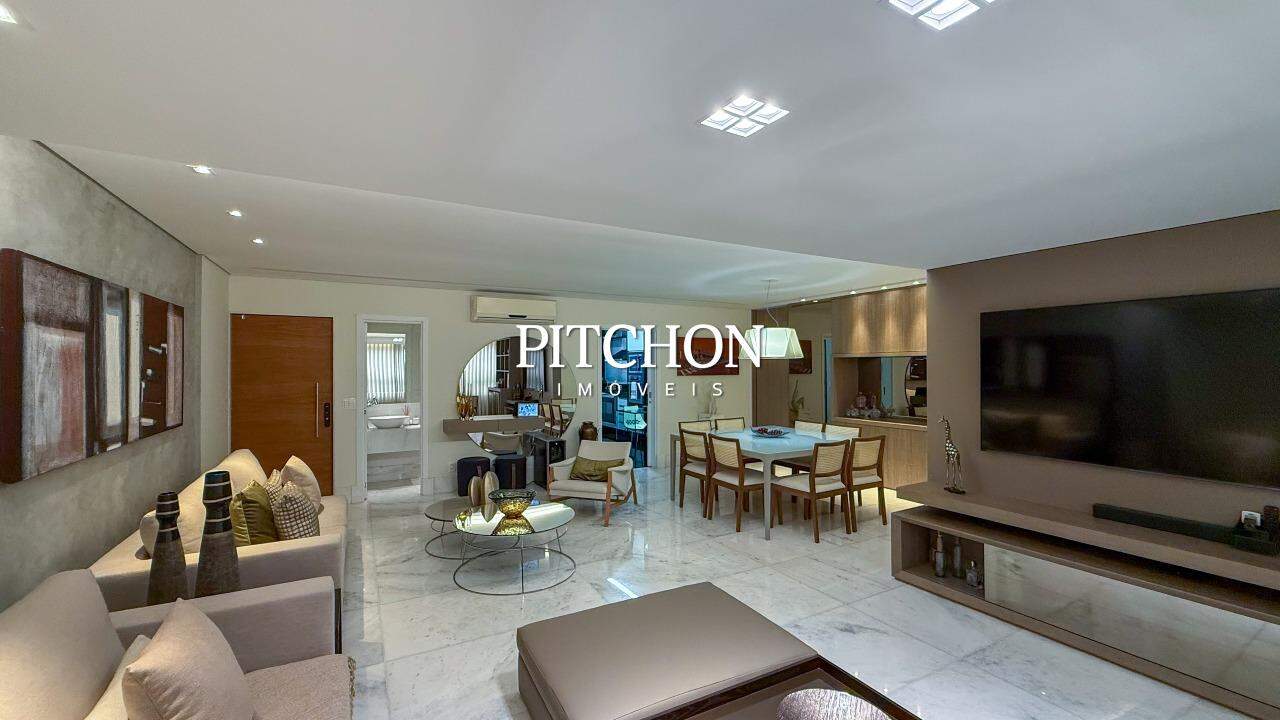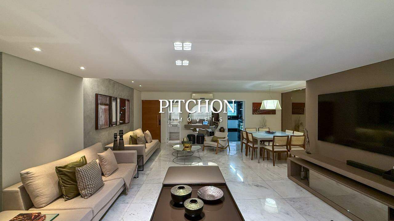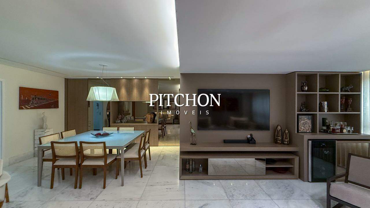 Sala ampla para 02 ambientes piso em mármore, lavabo, 04 quartos sendo, 02 suítes e 02 semi suítes com armários, banhos em mármore. Rouparia. Cozinha com piso e bancadas em granito e armários sob bancada. Área de serviço piso e bancada em granito e dependência para funcionários.