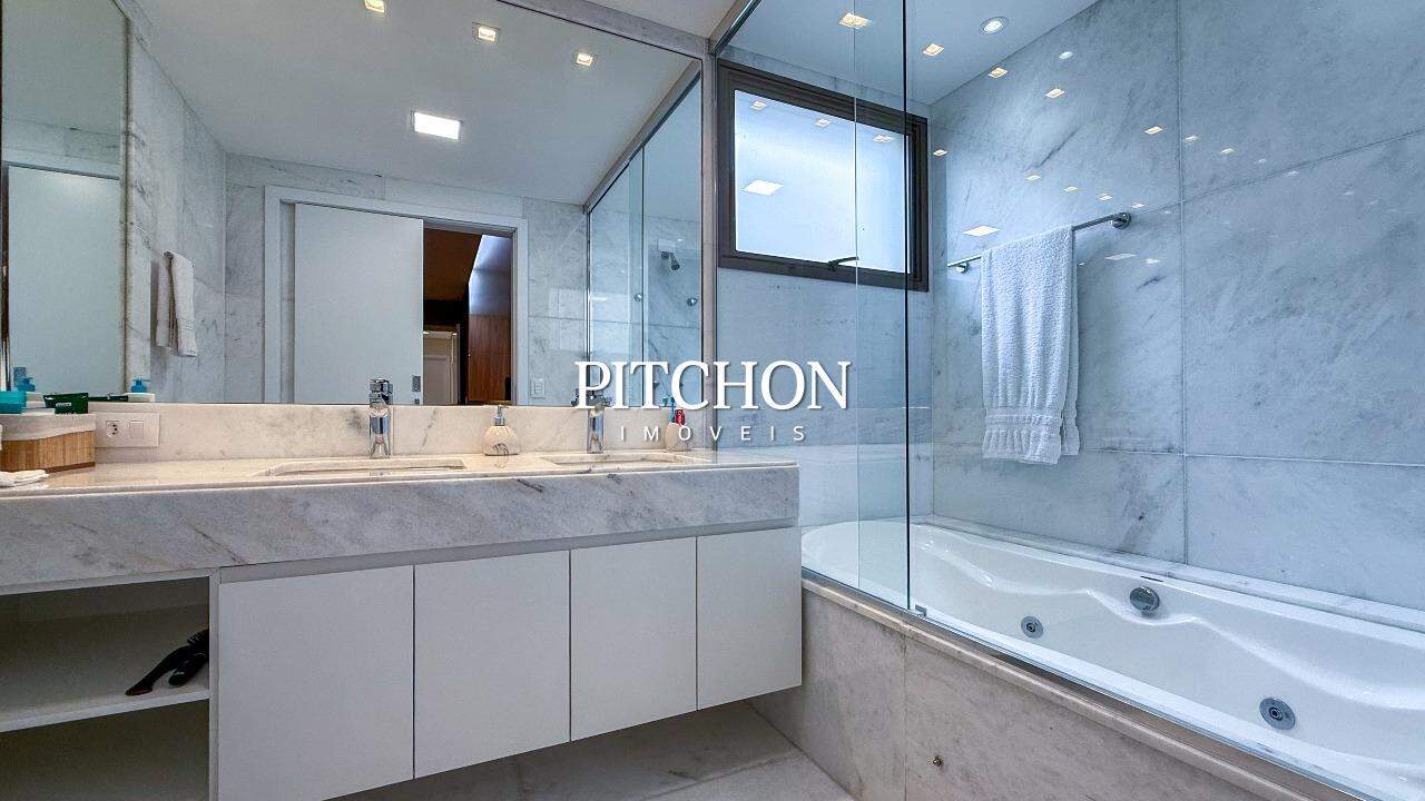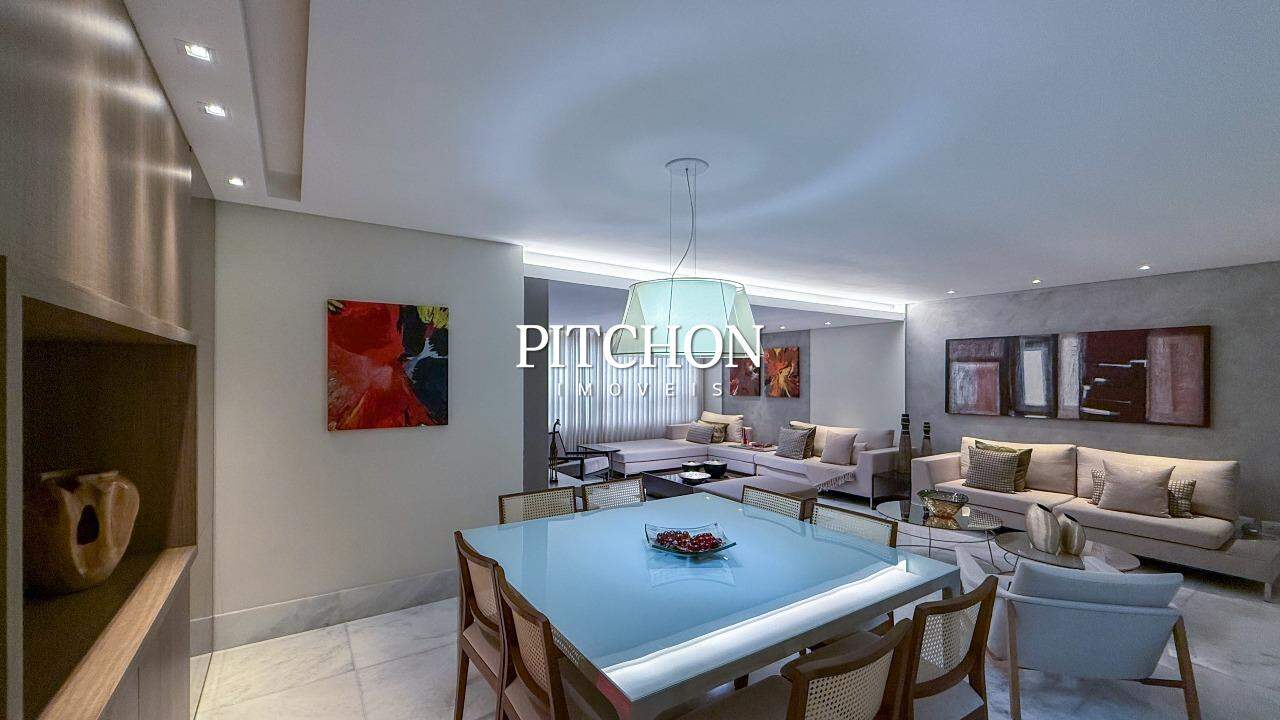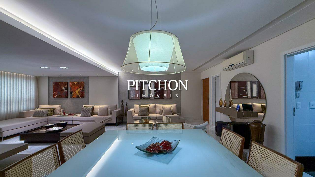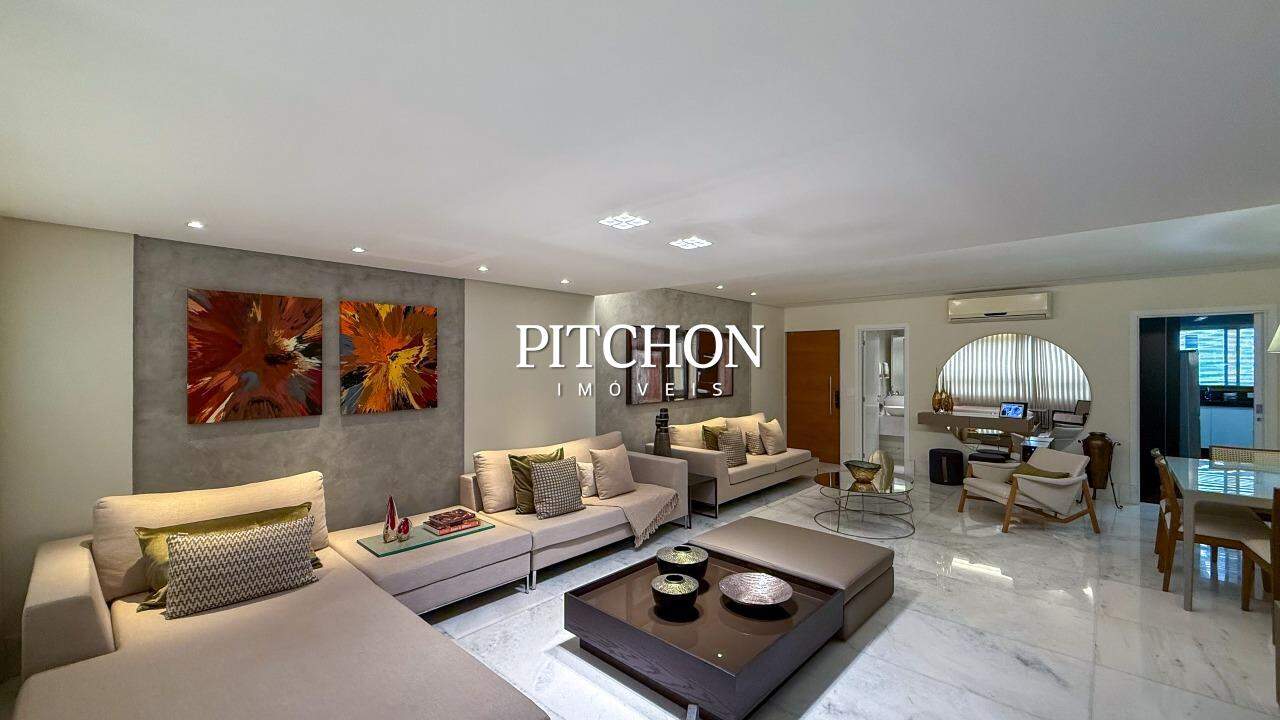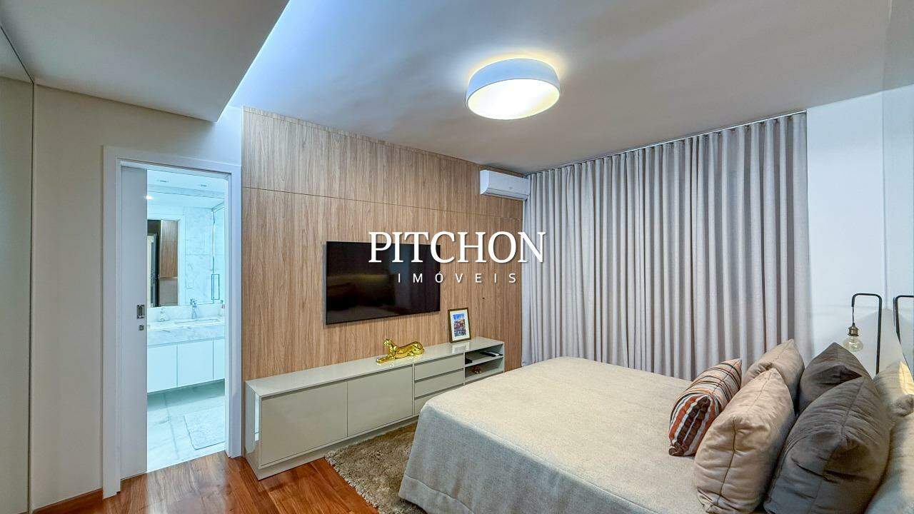 Sala ampla para 02 ambientes piso em mármore, lavabo, 04 quartos sendo, 02 suítes e 02 semi suítes com armários, banhos em mármore. Rouparia. Cozinha com piso e bancadas em granito e armários sob bancada. Área de serviço piso e bancada em granito e dependência para funcionários.