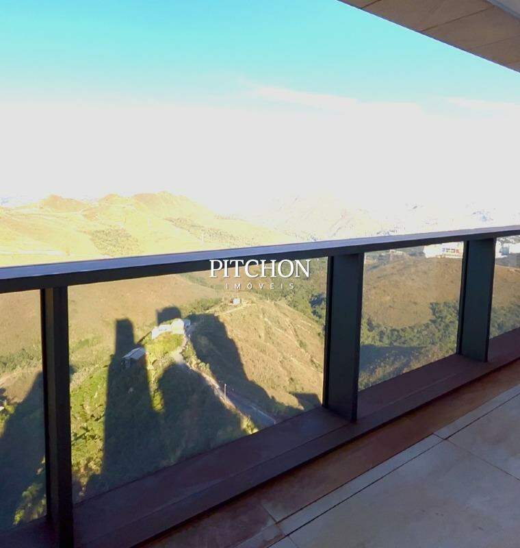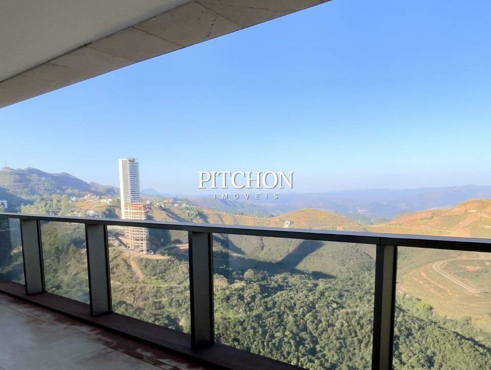 Apartamento com sala ampla e vista para as montanhas, piso em porcelanato travertino, lavabo, 4 suítes amplas e confortáveis, estar íntimo, espaço para copa noturna e rouparia.