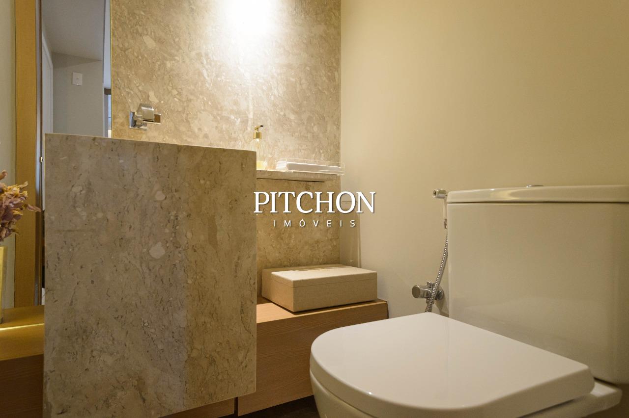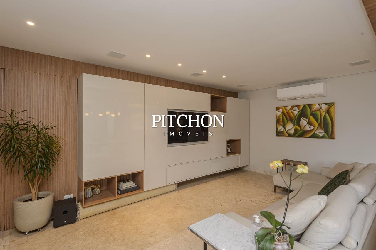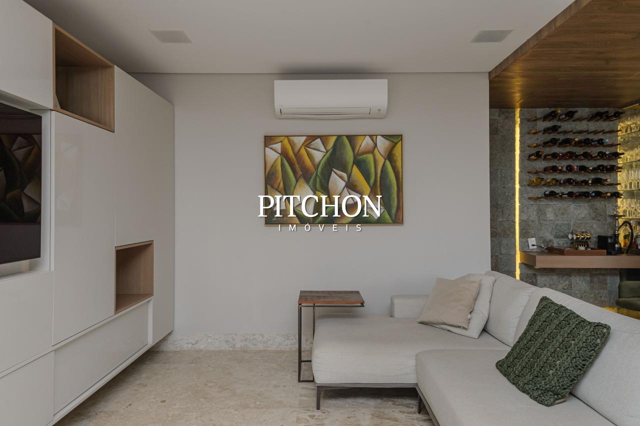 Ao adentrar no imóvel é recebido por uma ampla sala para dois ambientes com piso em mármore bege bahia, lavabo, varanda integrada, projeto luminotécnico e de sonorização, além de ar condicionado;