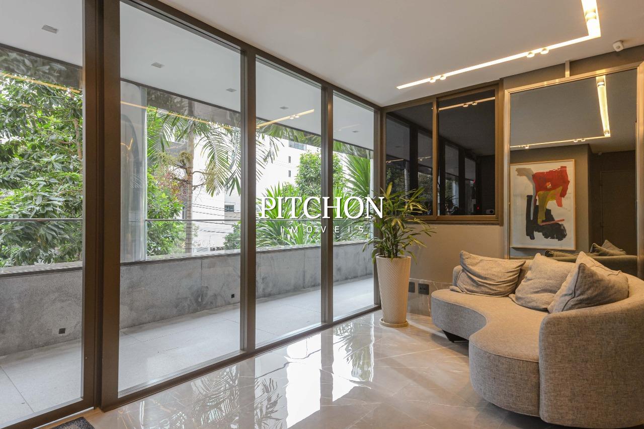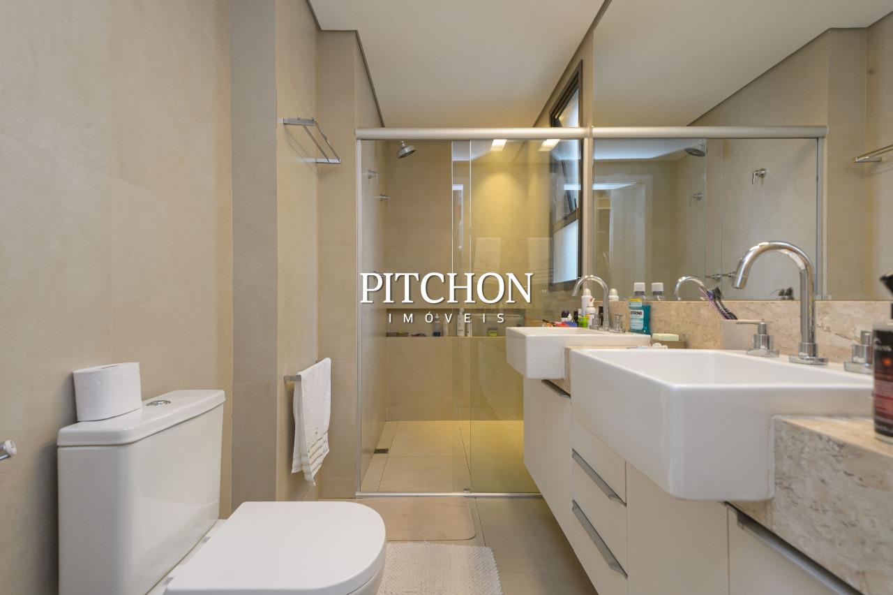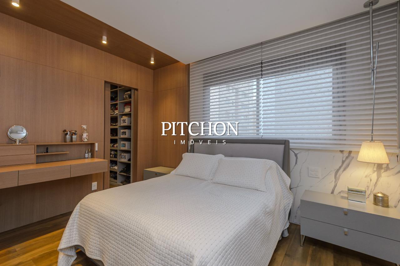 Ao adentrar no imóvel é recebido por uma ampla sala para dois ambientes com piso em mármore bege bahia, lavabo, varanda integrada, projeto luminotécnico e de sonorização, além de ar condicionado;