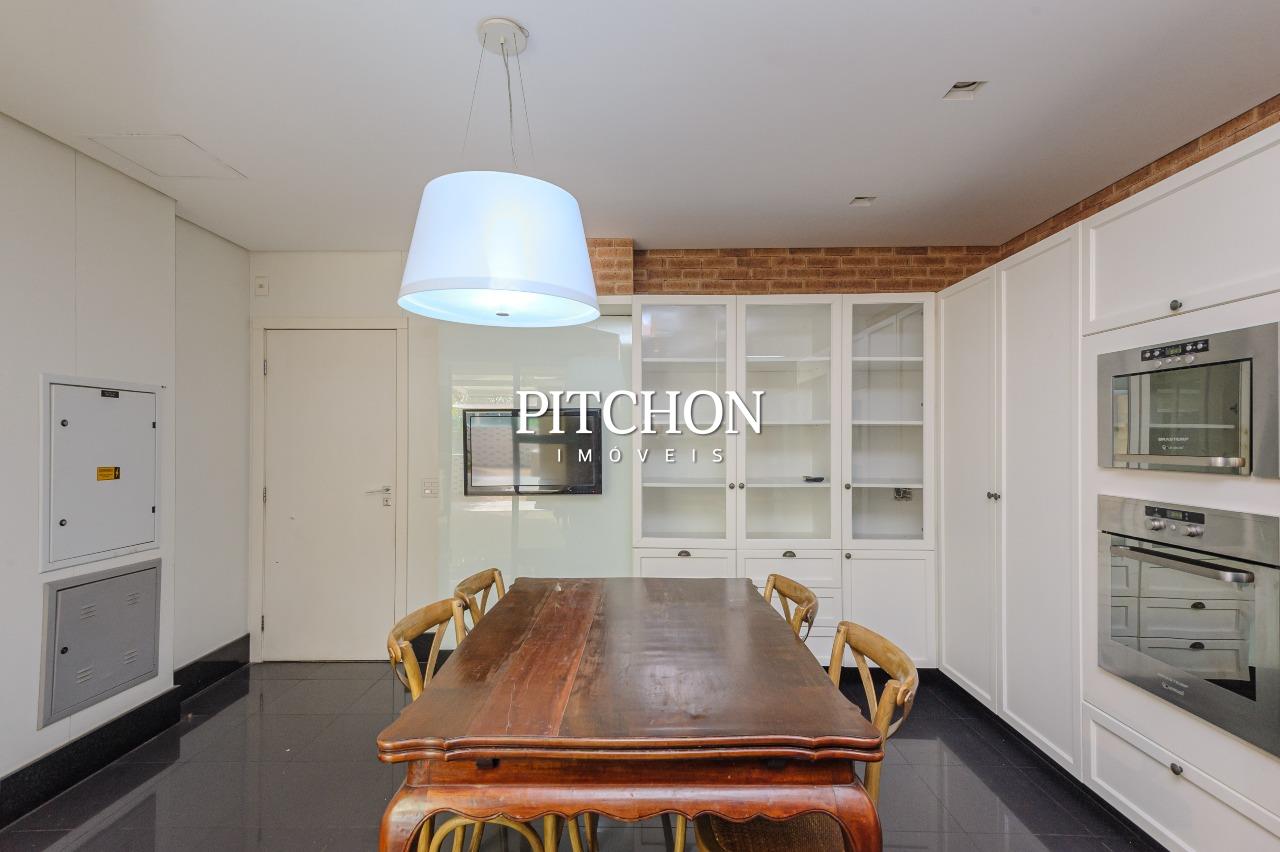 A cozinha é ampla, funcional e equipada com armários planejados, perfeita para quem aprecia cozinhar com conforto. O imóvel conta ainda com área de serviço independente e DCE (dependência completa de empregada), garantindo praticidade no dia a dia.