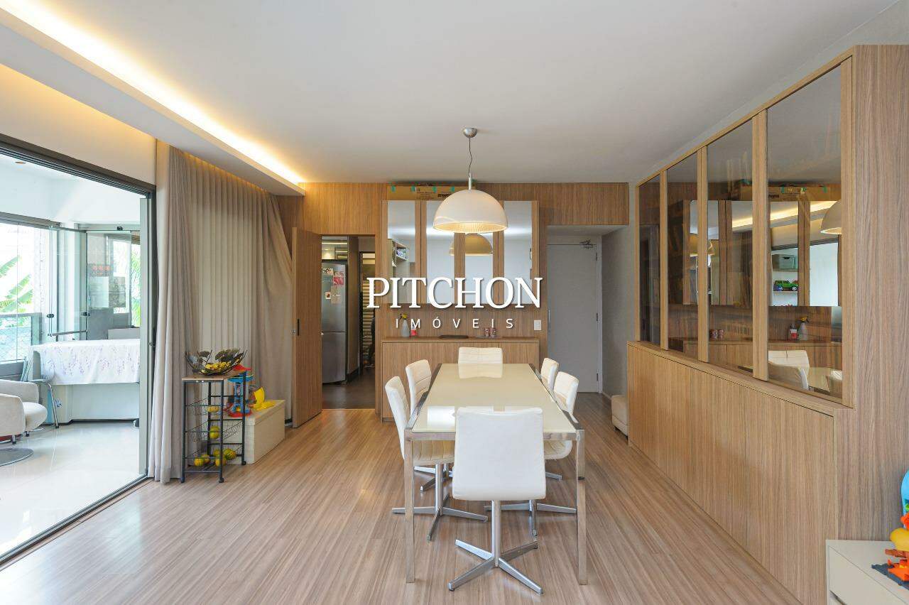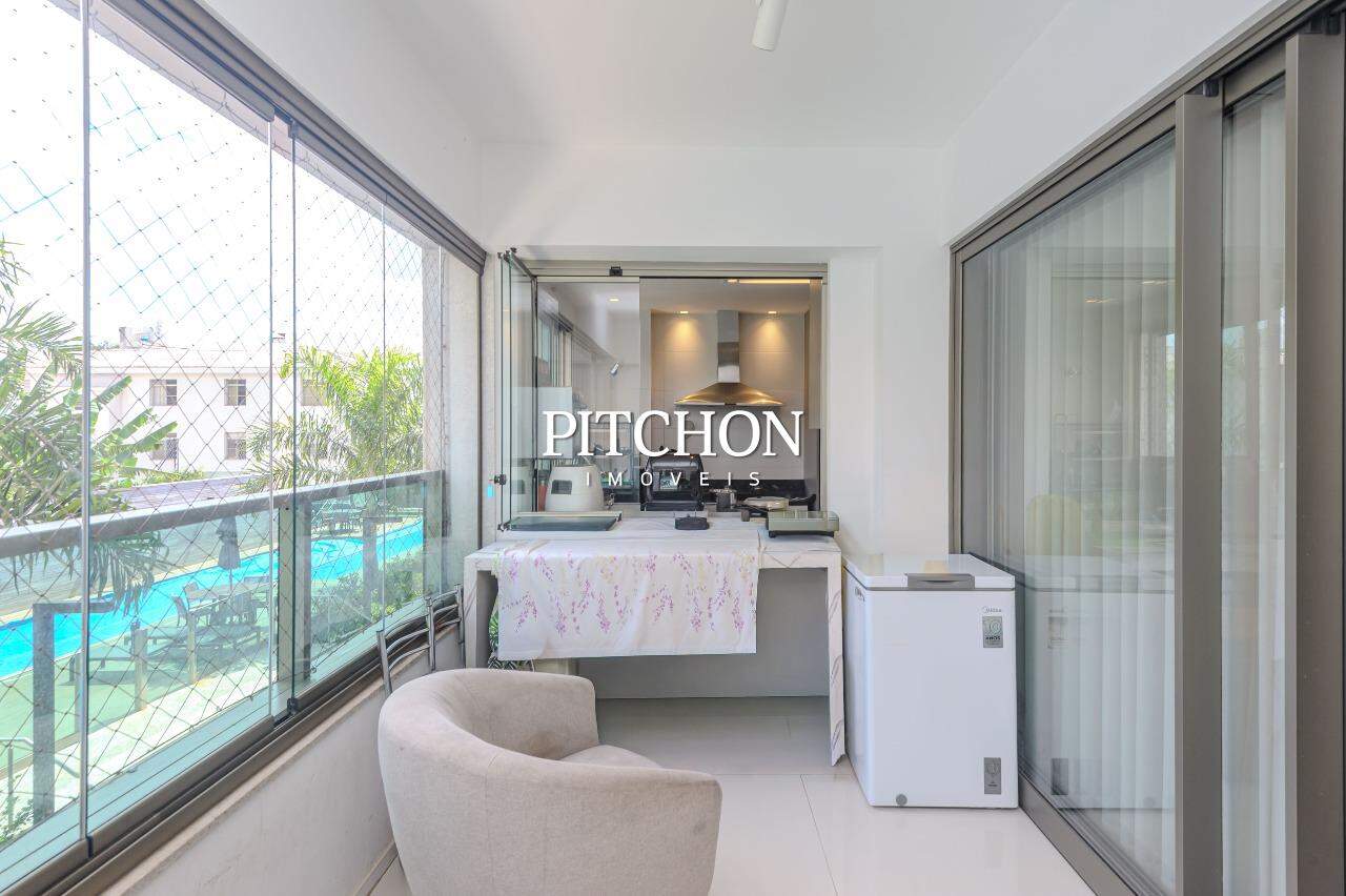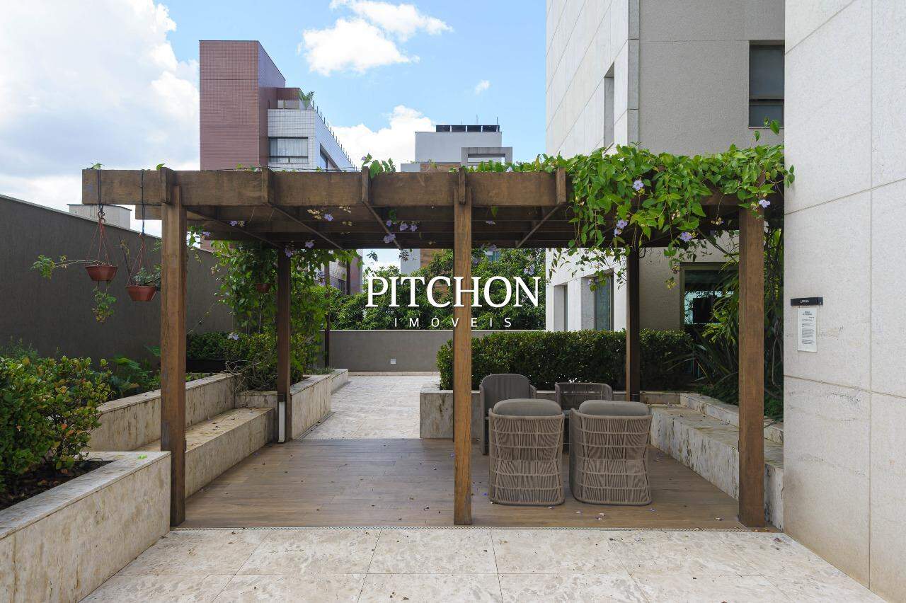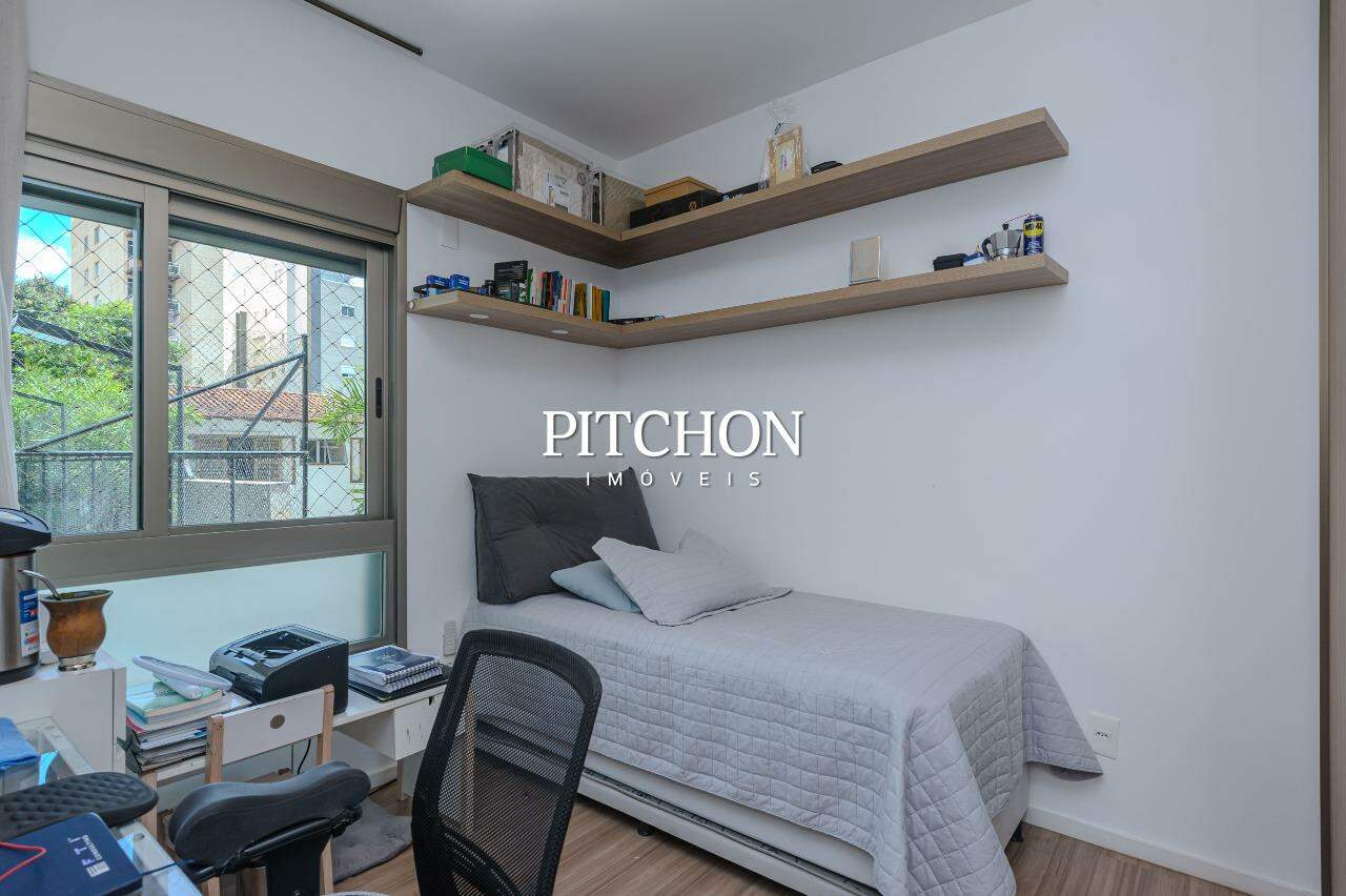 Área íntima com rouparia no corredor e 4 quartos, todos com armários planejados com portas de correr em espelhos e ar condicionado, sendo 2 suítes e 2 semi-suítes. O apartamento ainda conta com 3 vagas de garagem e box de garagem.