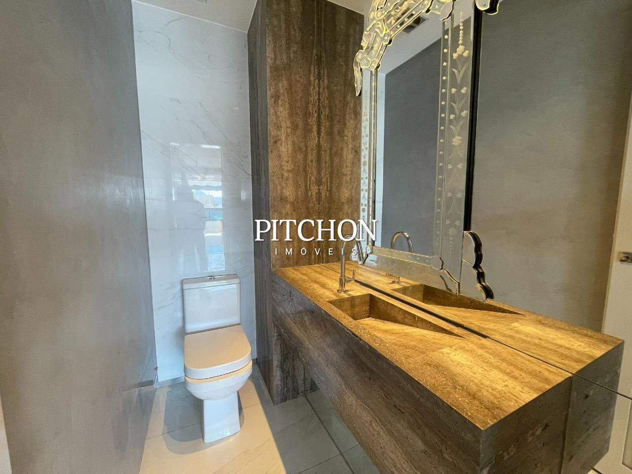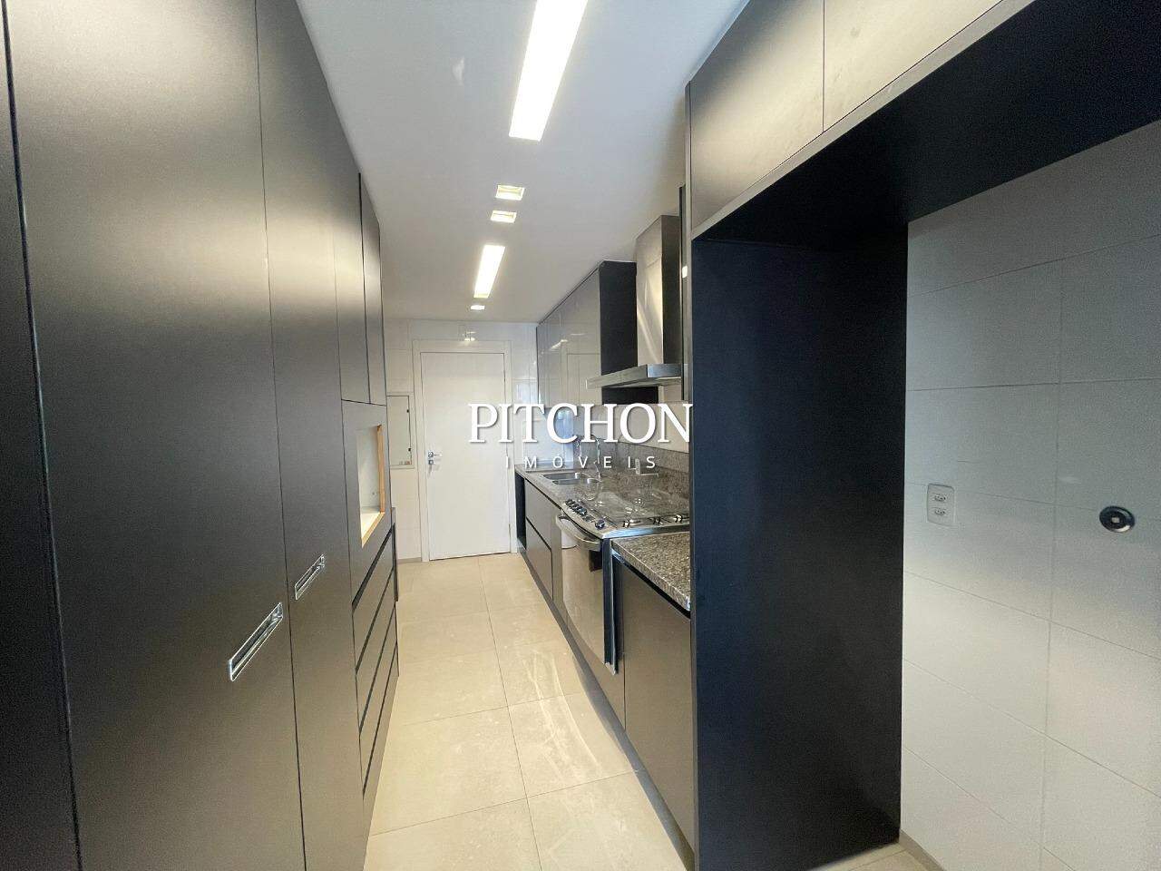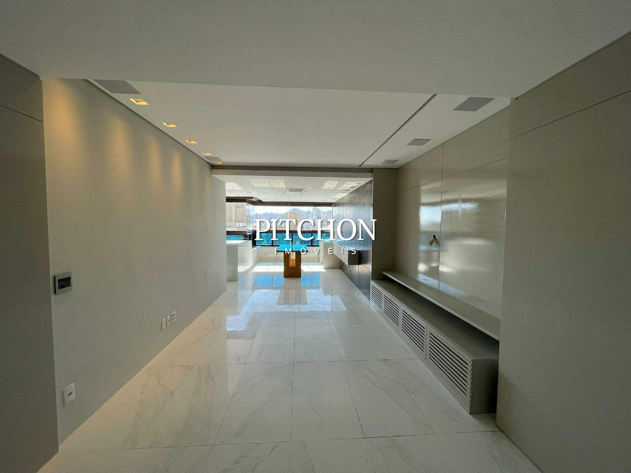 Sala espaçosa com piso em porcelanato, ar-condicionado central, marcenaria planejada e lavabo. Cozinha em conceito aberto, área de serviço independente e dependência completa para funcionária.
