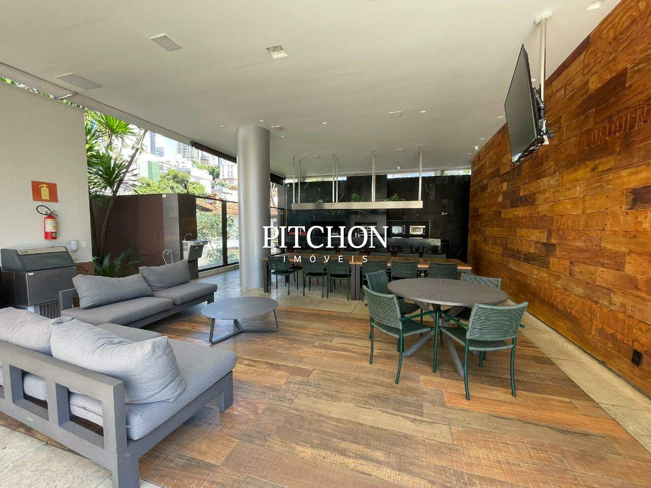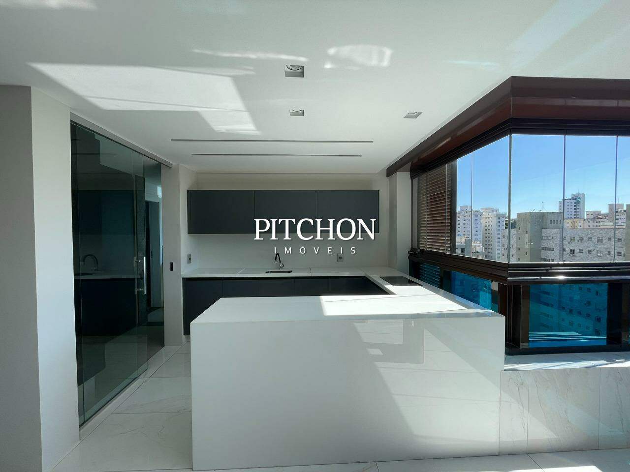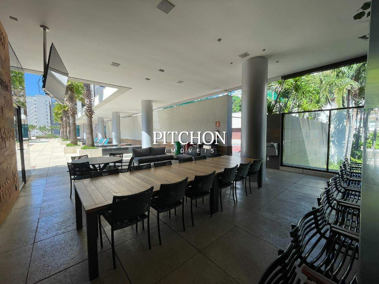 Sala espaçosa com piso em porcelanato, ar-condicionado central, marcenaria planejada e lavabo. Cozinha em conceito aberto, área de serviço independente e dependência completa para funcionária.