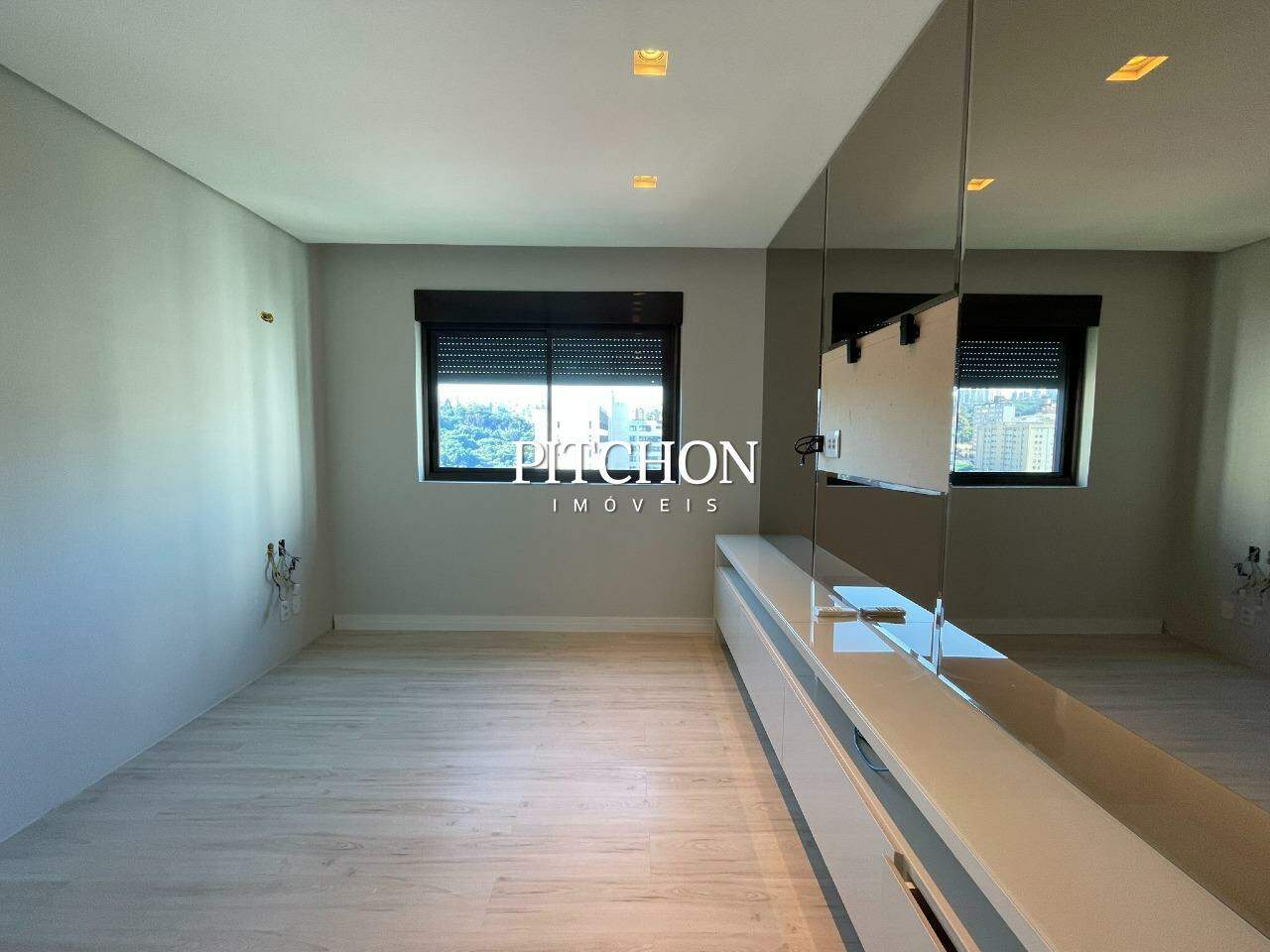 Apartamento com área de 156m², andar alto e vista privilegiada. São 4 quartos, sendo 1 suíte master com closet, painel para TV e ar-condicionado, além de 2 semi-suítes com armários planejados e mais um quarto.