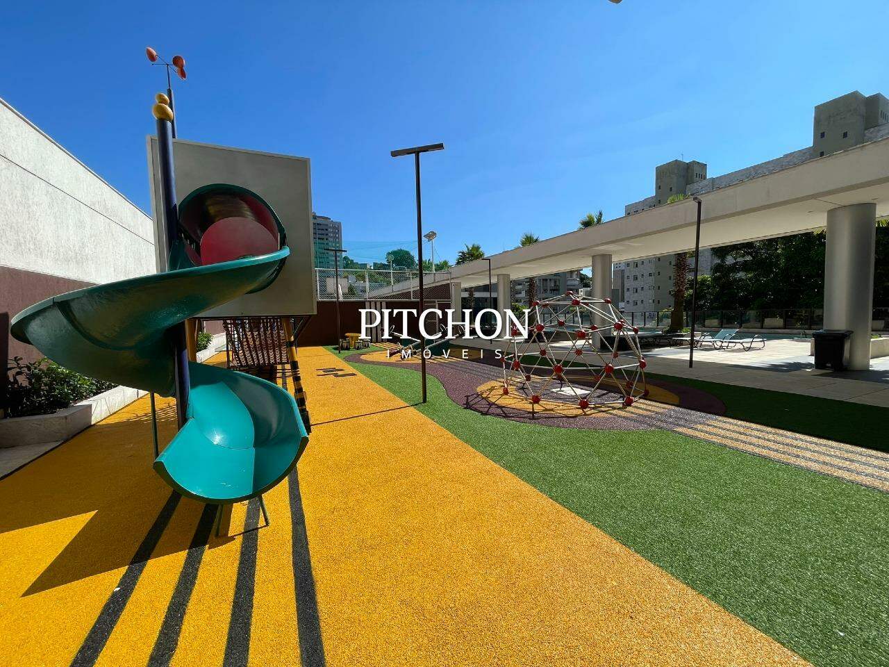 • Térreo: salão de festas, cinema, sala de karaokê, sala de massagem, espaço gourmet, quadra poliesportiva, quadra de tênis rápida, piscina, sauna a vapor e playground.