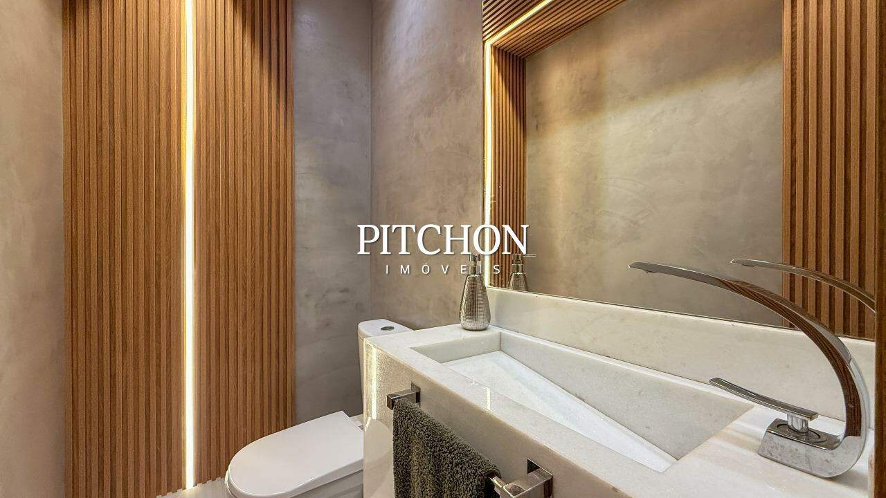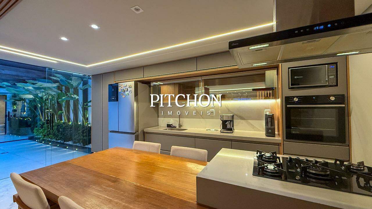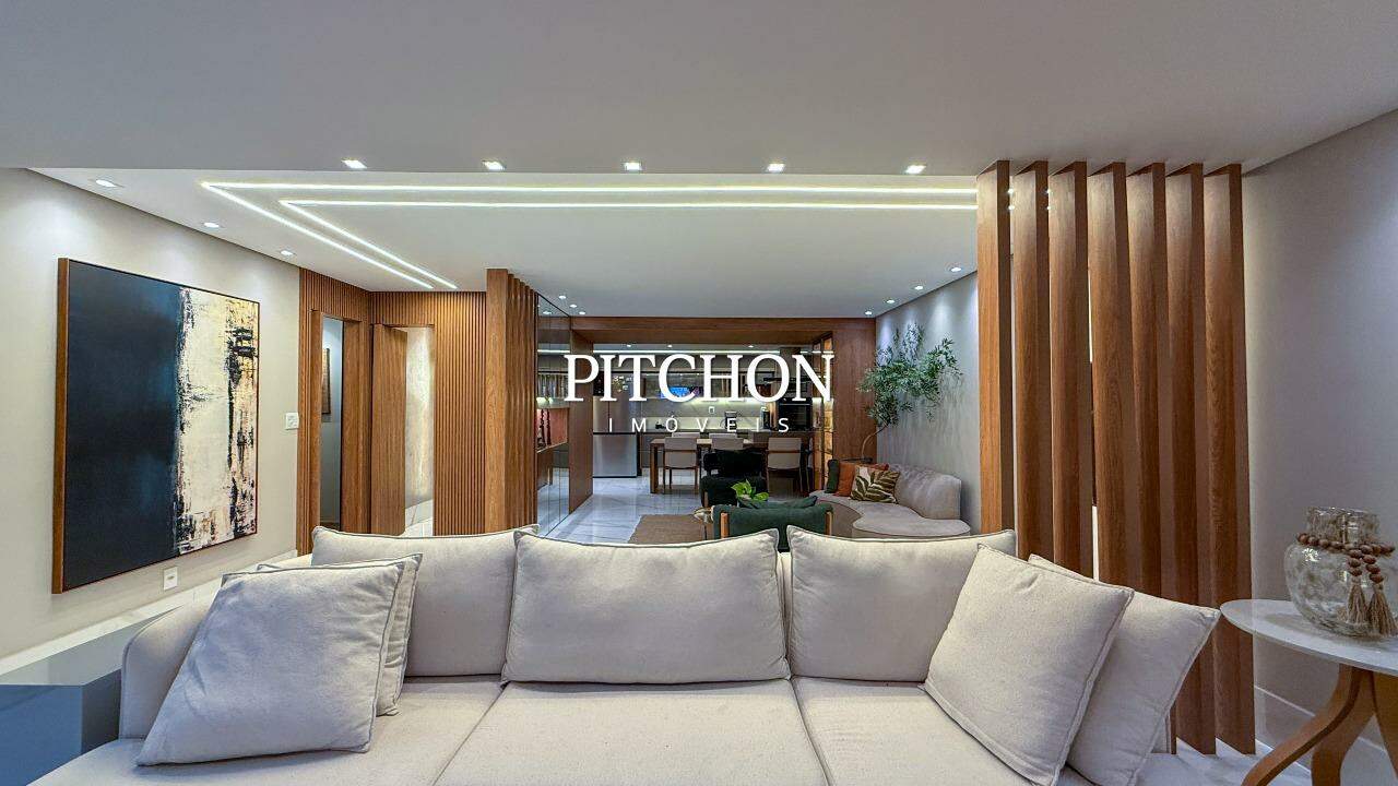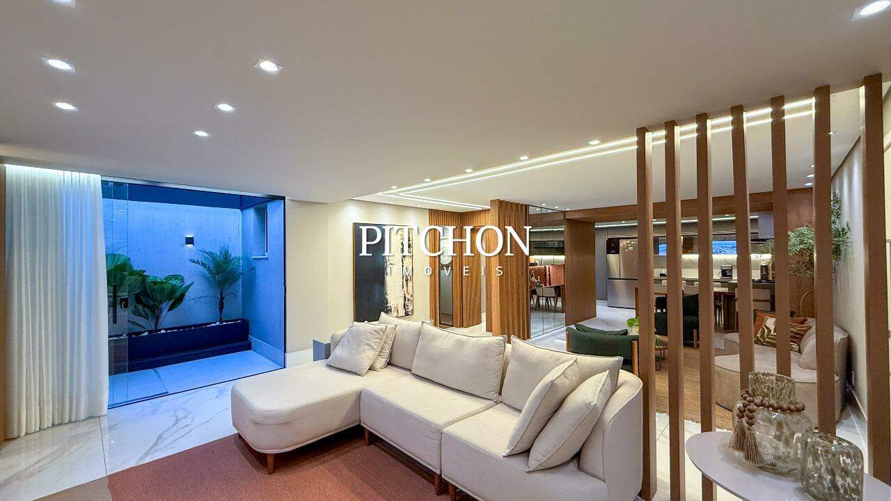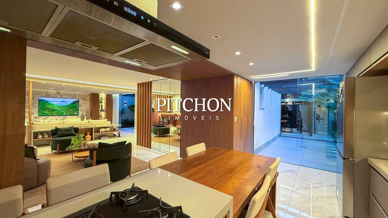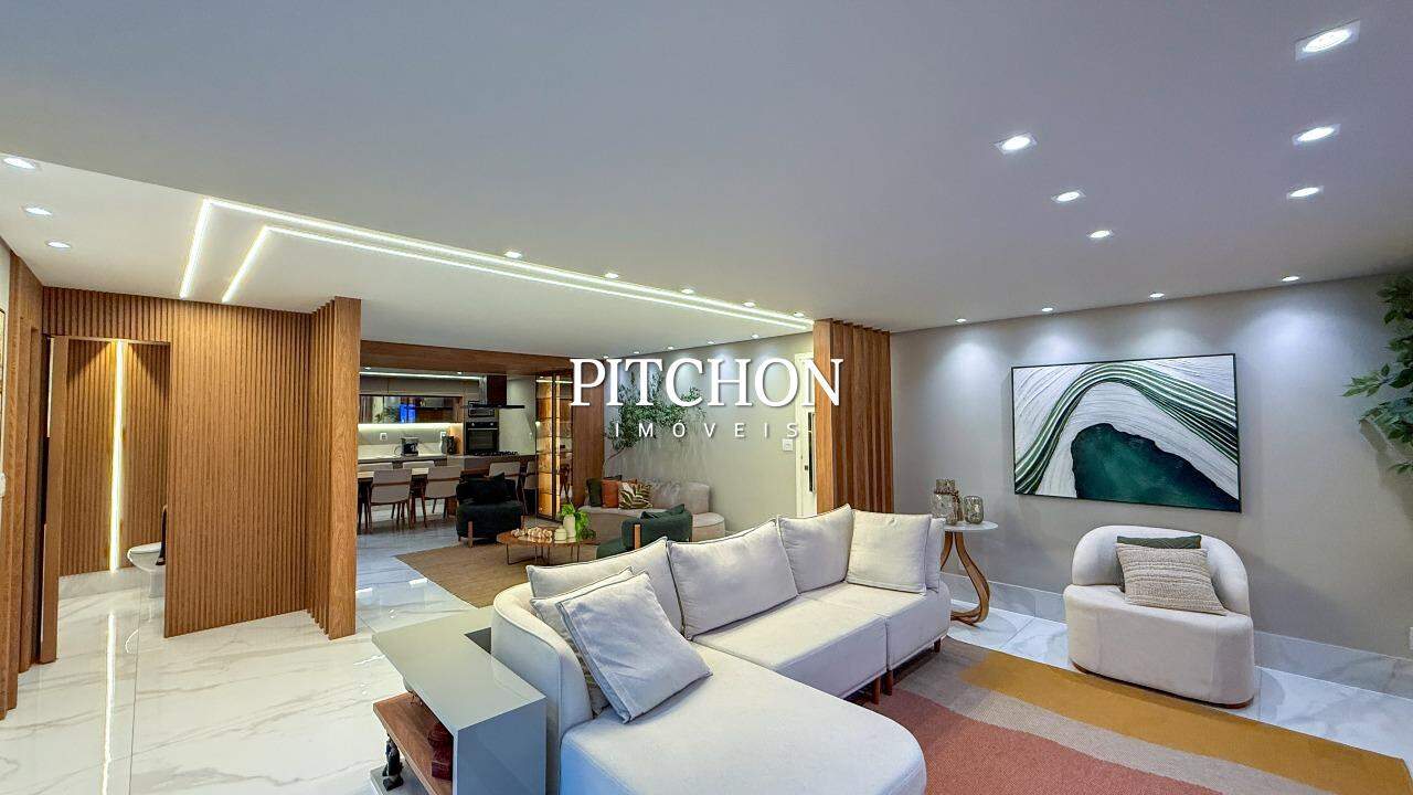 O apartamento possui uma sala extremamente ampla, com dois ambientes integrados e decoração elegante, além de um lavabo moderno e funcional. A cozinha é equipada, prática e se conecta de forma inteligente com a área social.