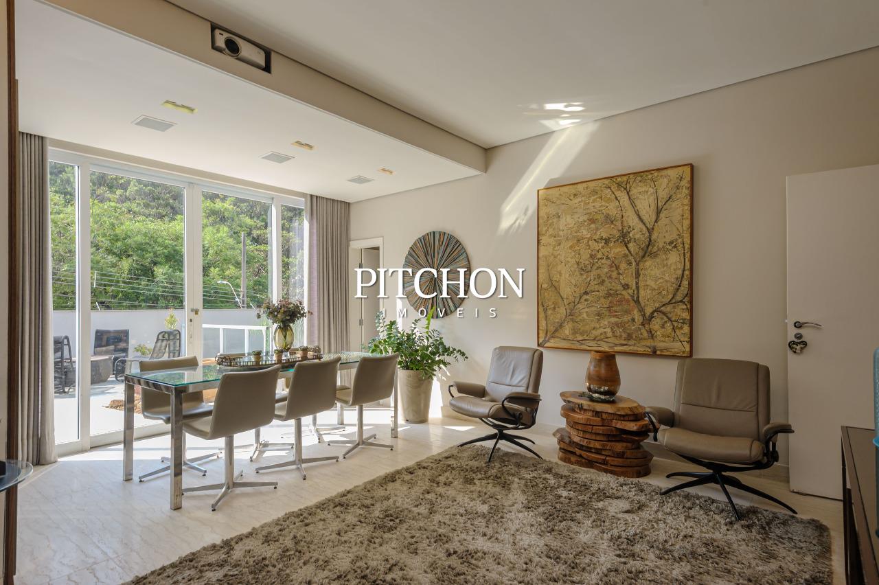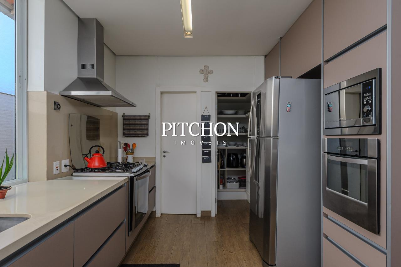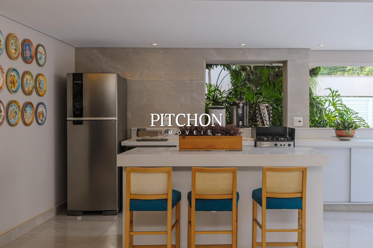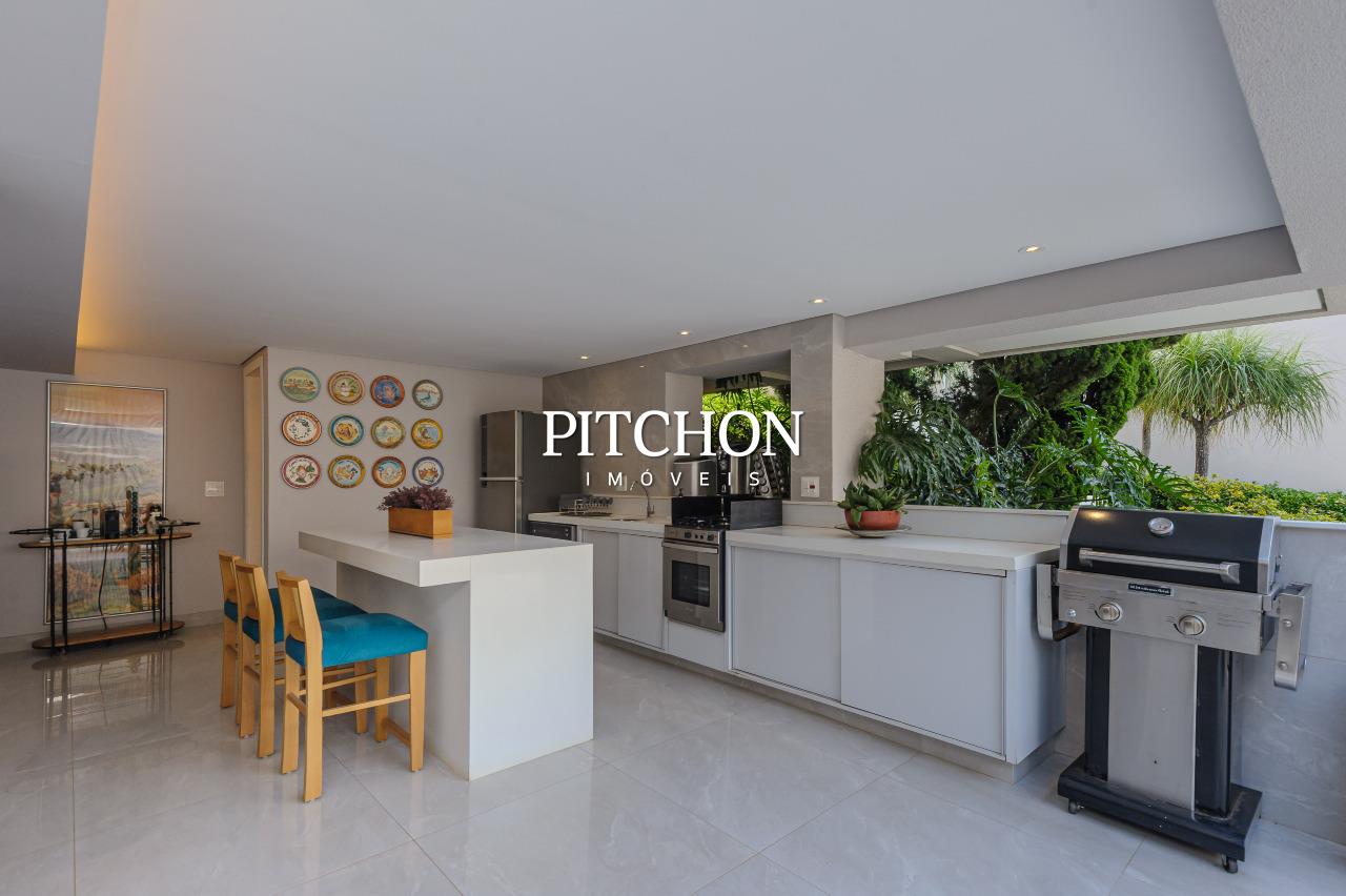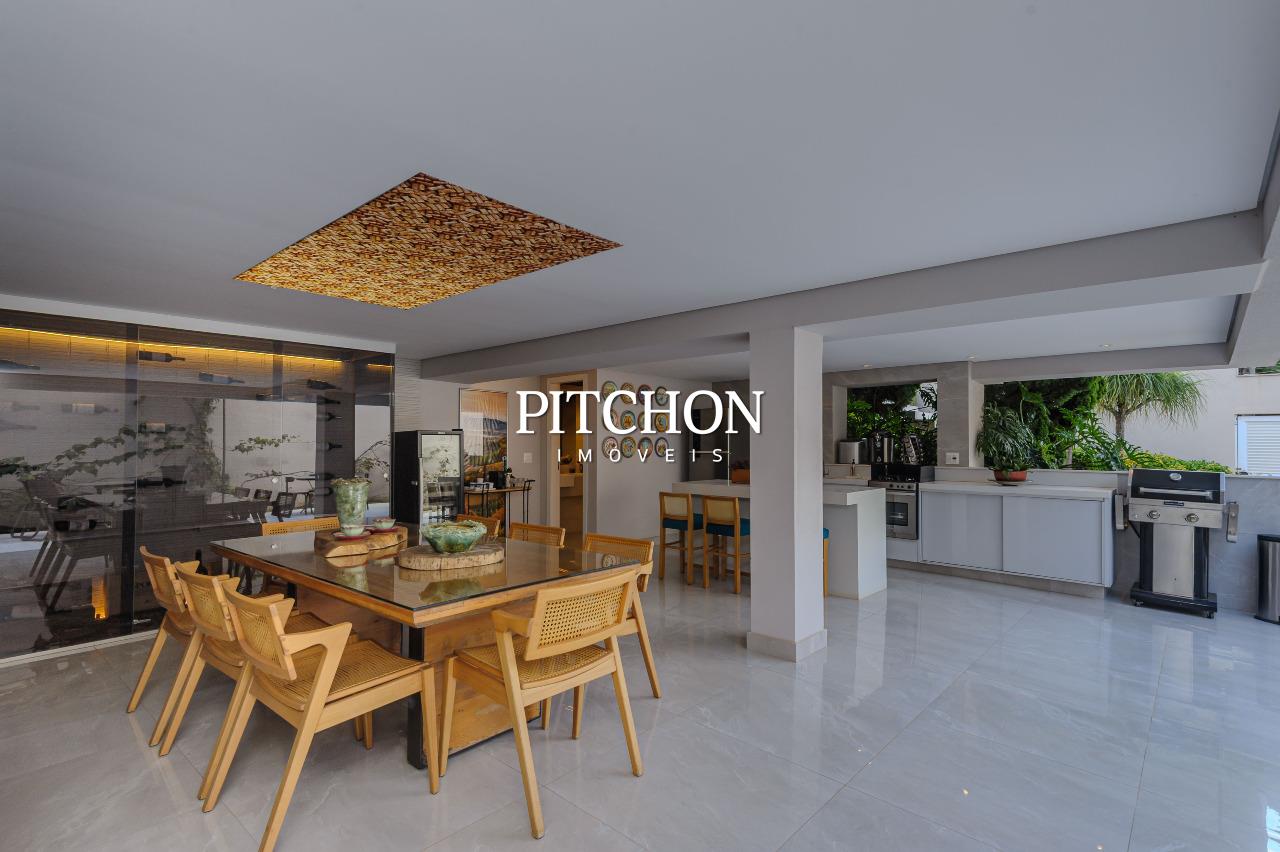 A cozinha americana, moderna e funcional, integra-se à sala com um painel de marcenaria para melhor divisão dos ambientes. Na área gourmet, conta com spa, sauna, churrasqueira e toda cozinha pronta, um ambiente perfeito para momentos de lazer e convivência. O projeto ainda contempla um agradável jardim, jardim de inverno que valoriza a iluminação natural e garagem com capacidade para até seis veículos, atendendo com conforto às necessidades do dia a dia.