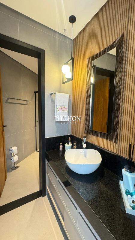 1º Pavimento: • Sala ampla e versátil para dois ambientes, com piso em mármore e toda a automatizada com caixas de som da JBL. Possui o teto em forro de madeira. Possui uma cozinha ampla e espaçosa com bancadas e piso em granito, área de serviço completa e dois quartos com um banheiro no corredor.