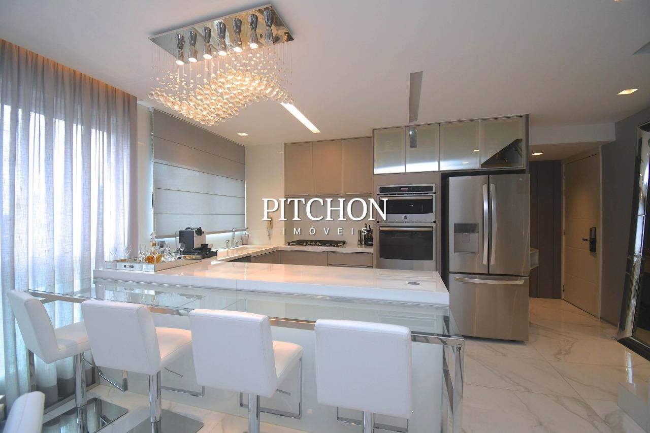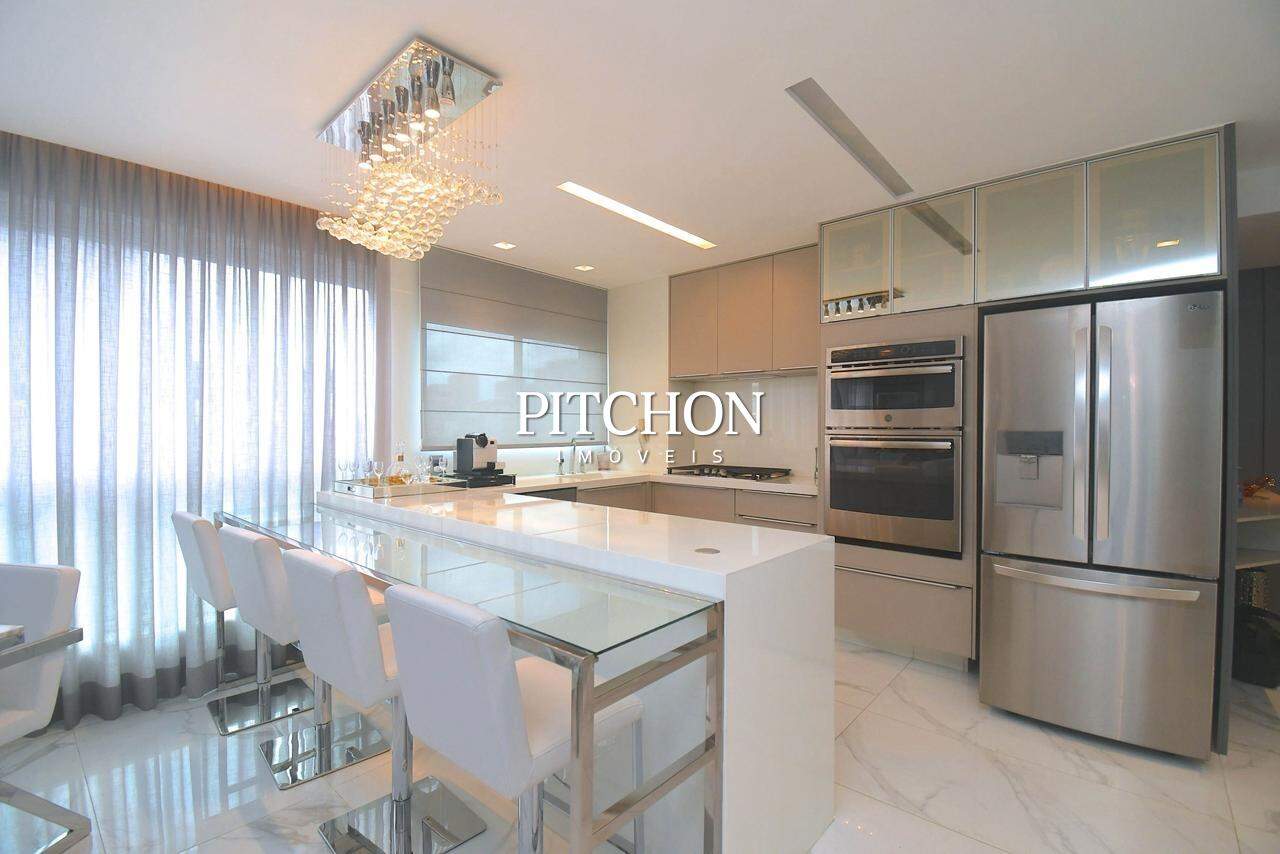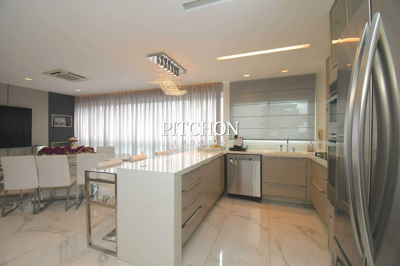 Cozinha americana integrada – Armários planejados, bancada de qualidade e fácil acesso à área de convívio.