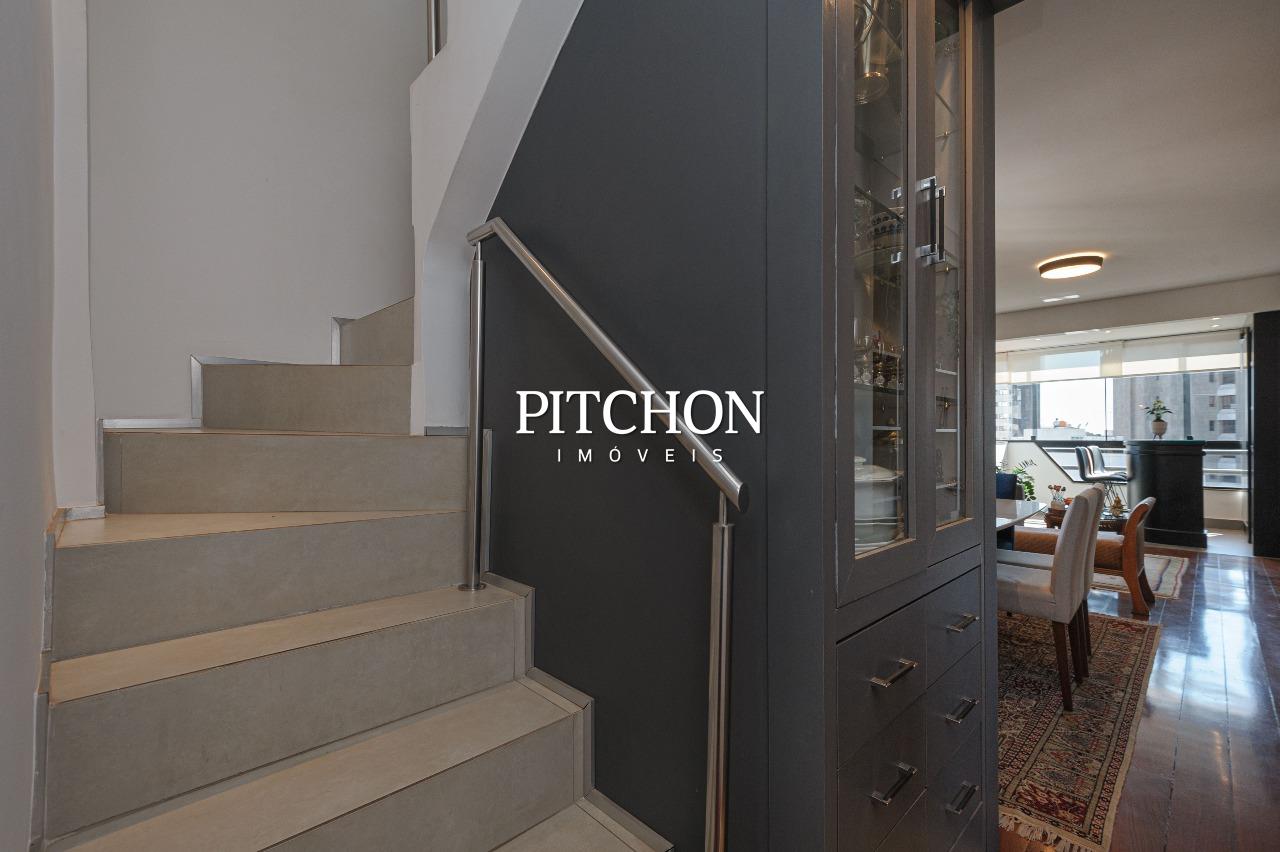 Cobertura duplex com 310,90m2, de área principal incluindo os dois andares no total.