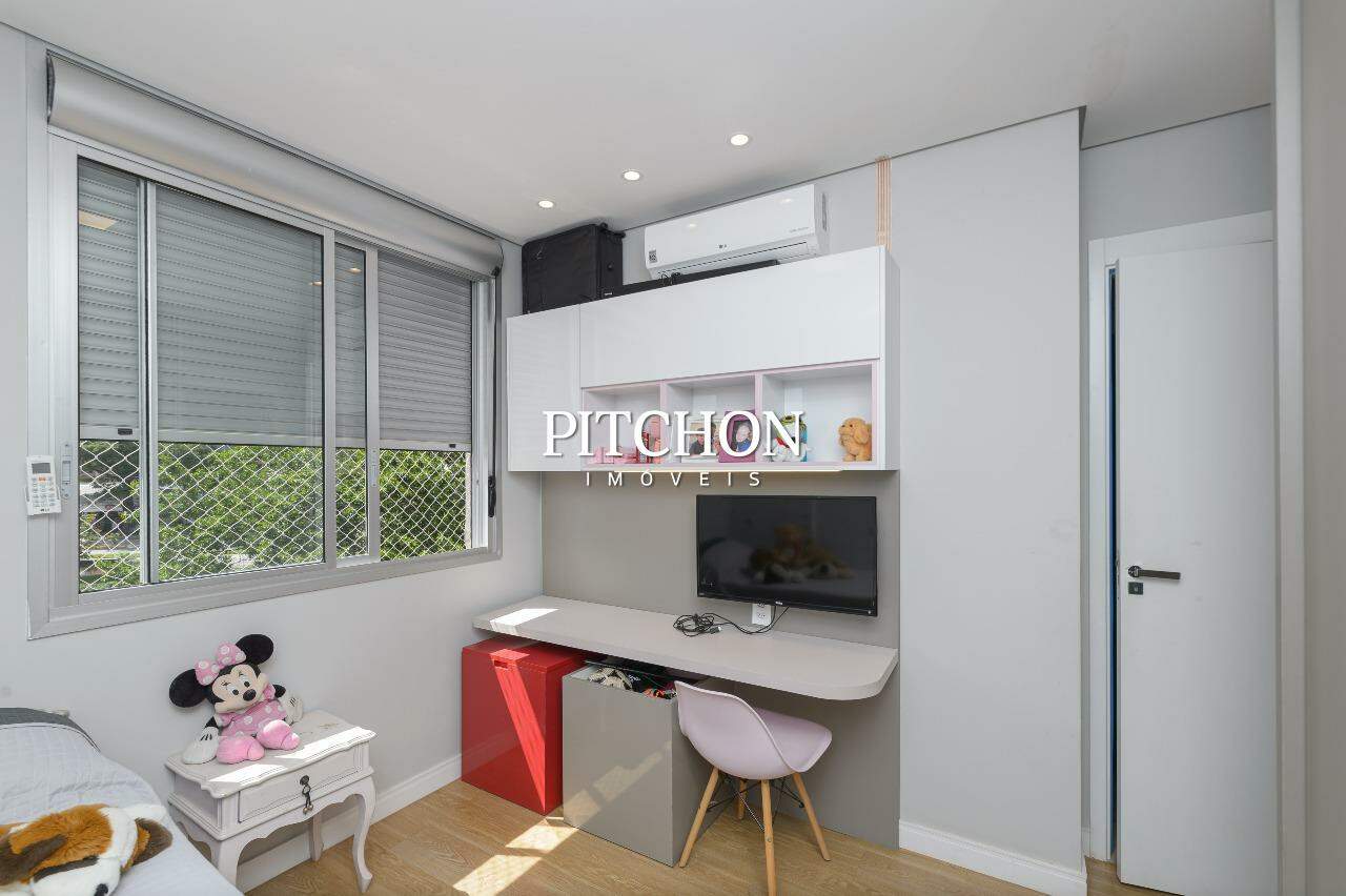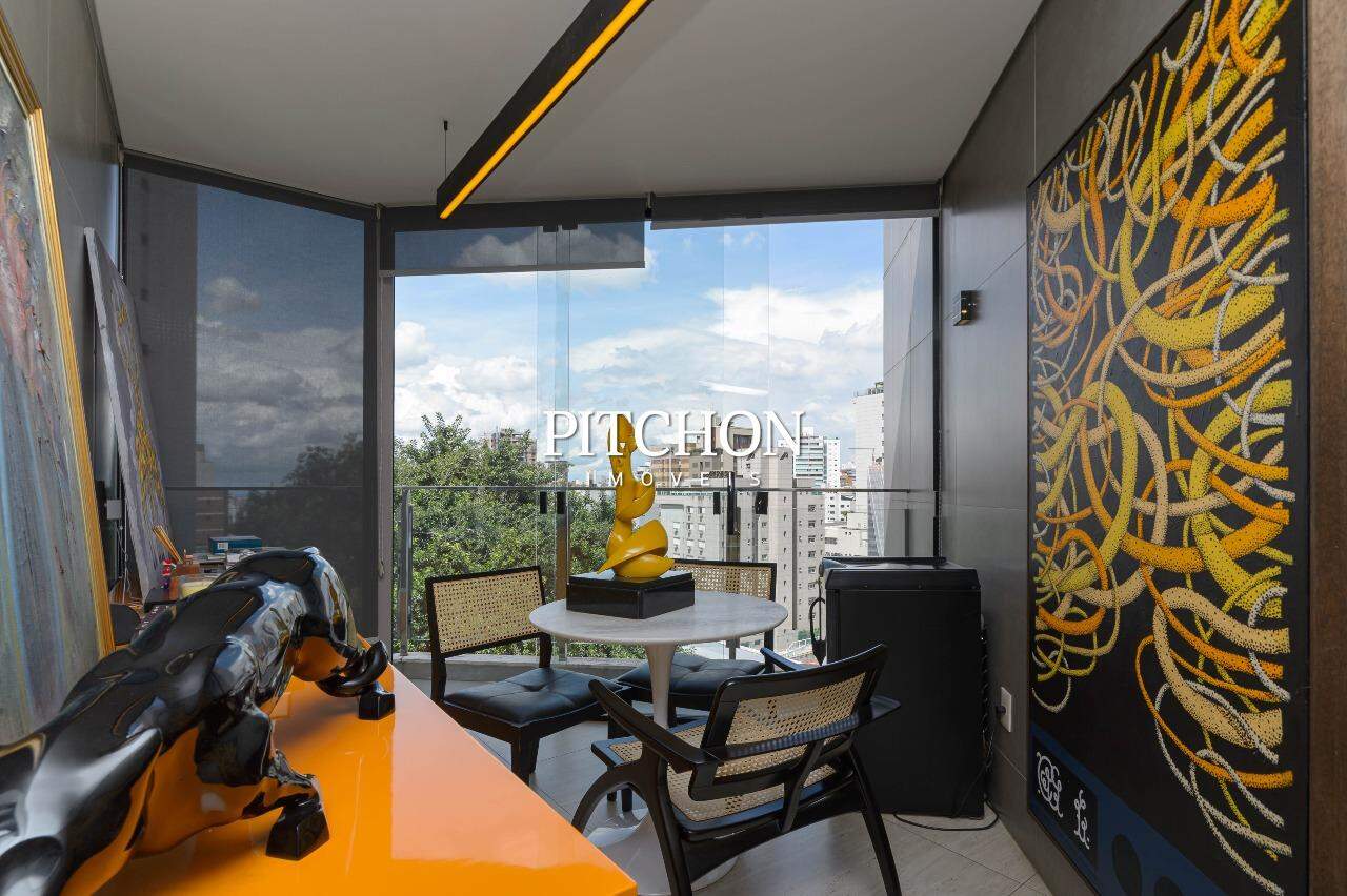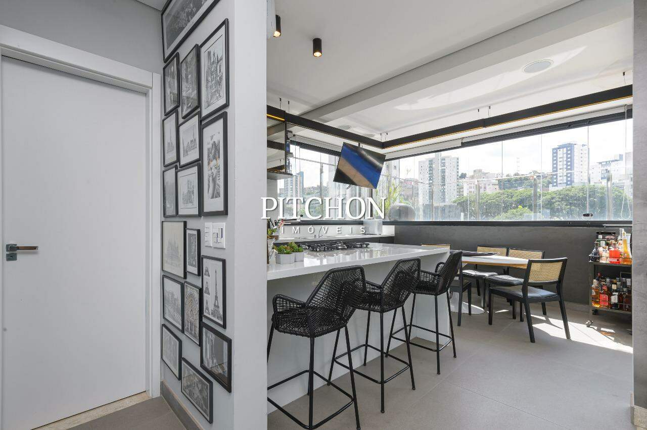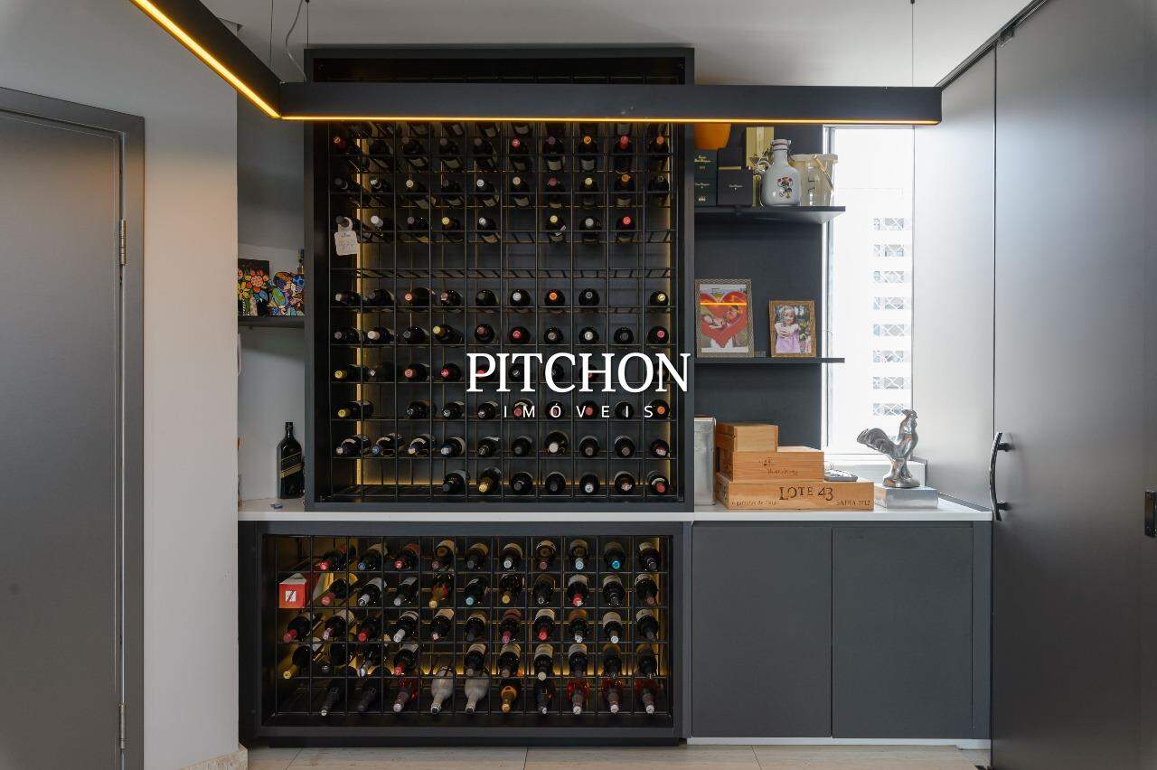 Espaço gourmet com bancada em quartzo branco, cook top, forno embutido, caixas acústicas embutidas. Porta de entrada do apartamento blindada.