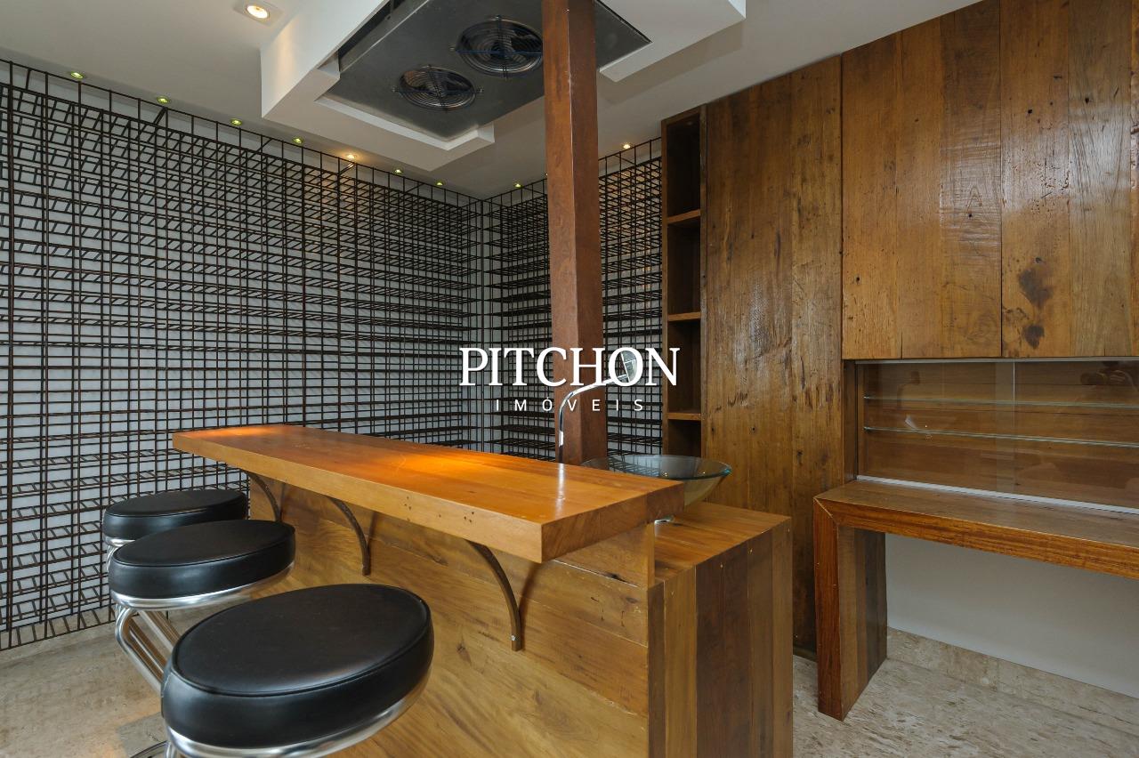 Para os apreciadores de vinho, a cobertura conta com adega climatizada e armário planejado para taças, decantes e acessórios.