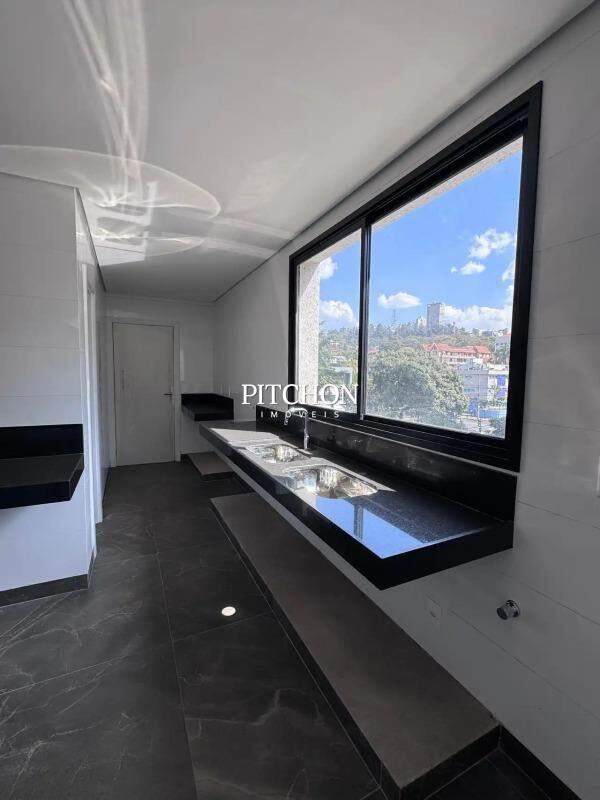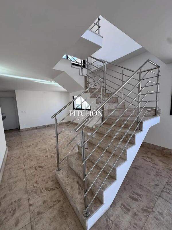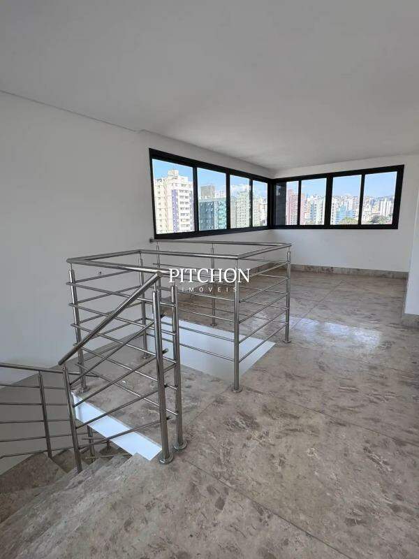 Cobertura com planta ampla distribuída em dois pavimentos, com ambientes bem definidos e integração entre áreas sociais e de lazer. O imóvel conta com cinco suítes, proporcionando conforto e privacidade, além de espaços ideais para convivência e recepção.