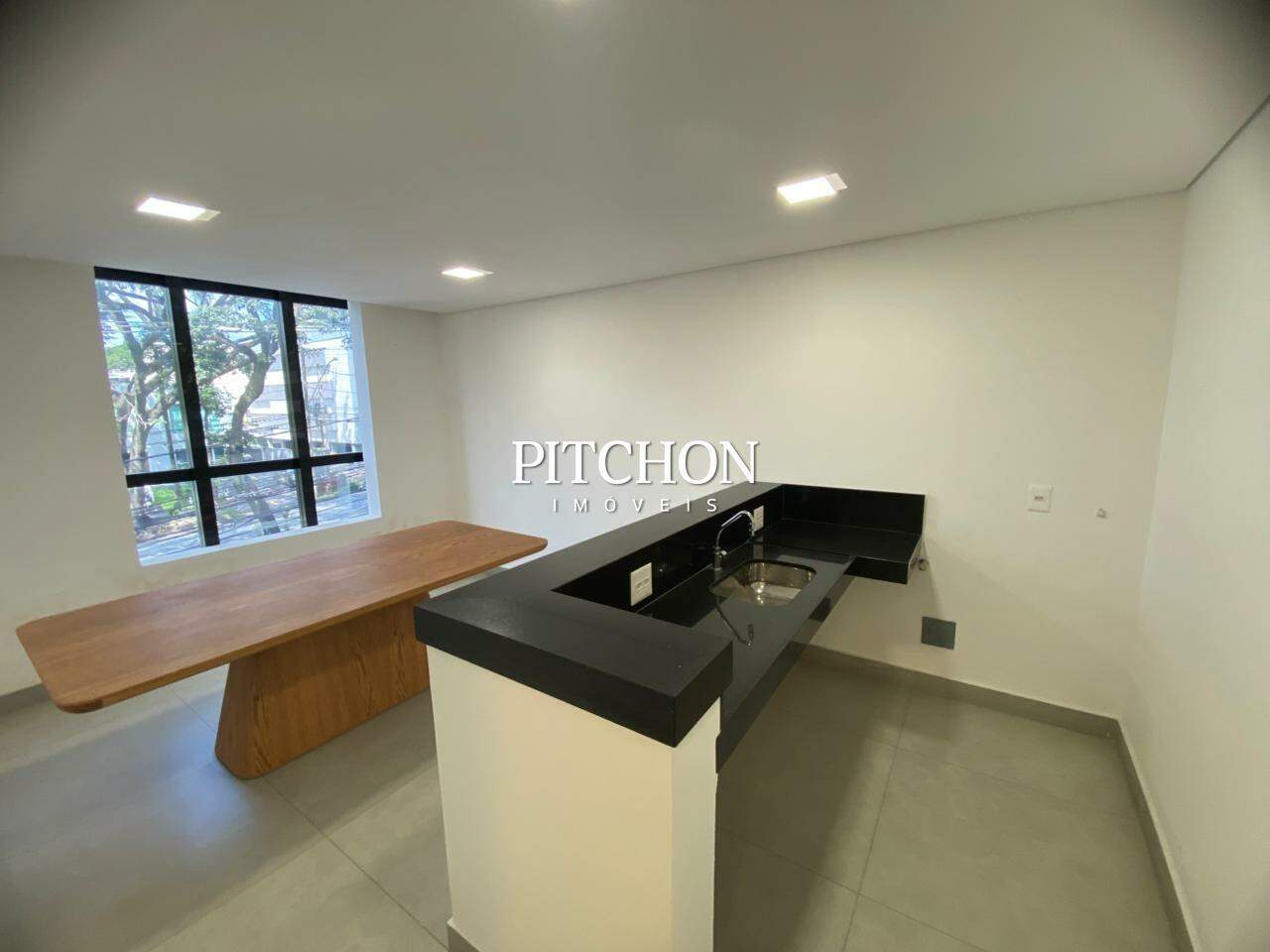 Acabamento em porcelanato, mármore Bege Bahia Levigado Fosco nas salas, granito São Gabriel nas bancadas da cozinha. além de vidros com isolamento acústico e preparação para ar-condicionado em todos os ambientes.